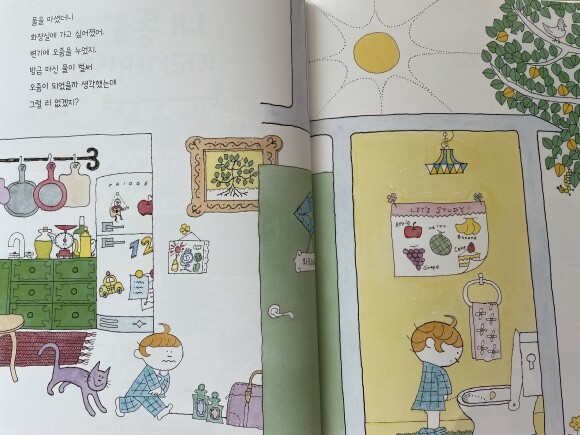 오늘의 책이 책인 만큼 똥이란 단어가 많이 나올 것 같네요. 어느 날, 아이가 배변 후 조용해서 가봤더니 변기에 얼굴을 반쯤 집어넣고서 있는 게 아니겠어요. (조용하면 사고 치는 건 왜 지금도 똑같은지..)