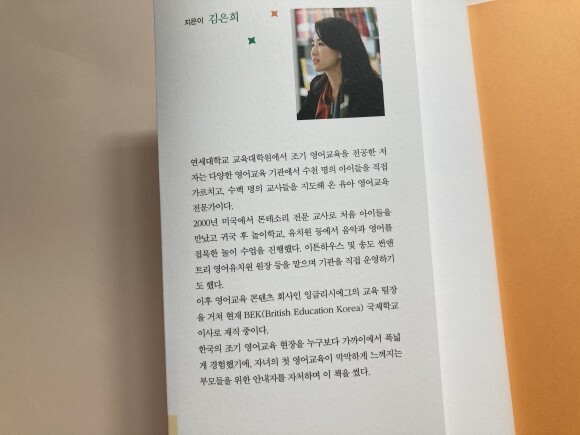 저자는 미국에서 몬테소리 전문교사로 아이들을 처음 만나 귀국 후 다양한 영어교육 기관에서 수천 명의 아이들을 직접 만나고 수백 명의 교사들을 만나오면서 겪었던 이야기들을 풀어 냈어요. (현재는 BEK국제학교의 이사로 재직 중)