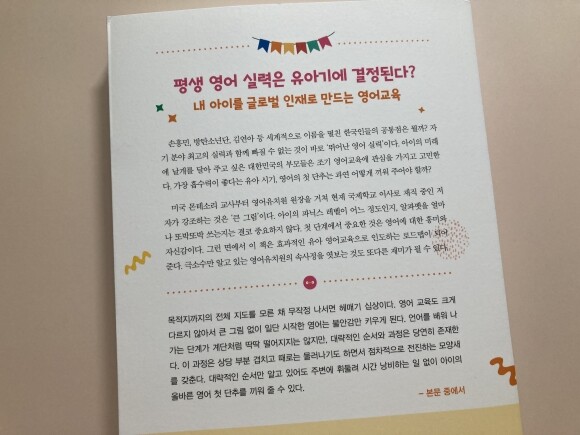 카더라 식의 정보가 아닌 전문가에게서 솔직한 이야기를 듣고 싶었는데, 이번에 유아이북스에서 출시된 "내 아이 영어 첫 단추" 사실 제목보다 부제에 더 눈에 더 갔어요. '영어 유치원을 고민하는 모든 부모를 위한'이라는 말!