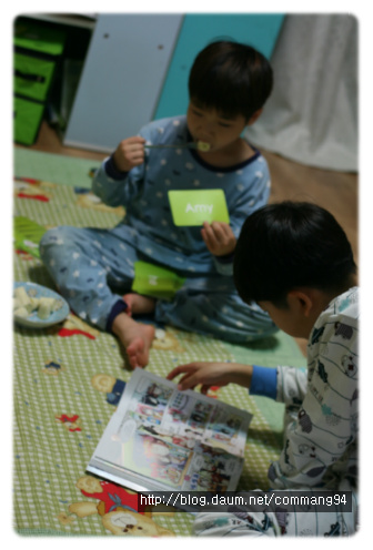 아빠가 늦으시는 날..저녁먹고 여유롭게 책을 읽는 미들문과 스몰문...