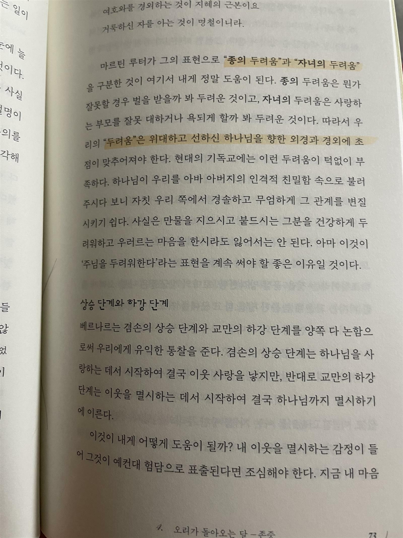 그리고 ‘겸손’의 바탕으로 ‘경외’를 말하는 점이 제일 인상 깊었다.