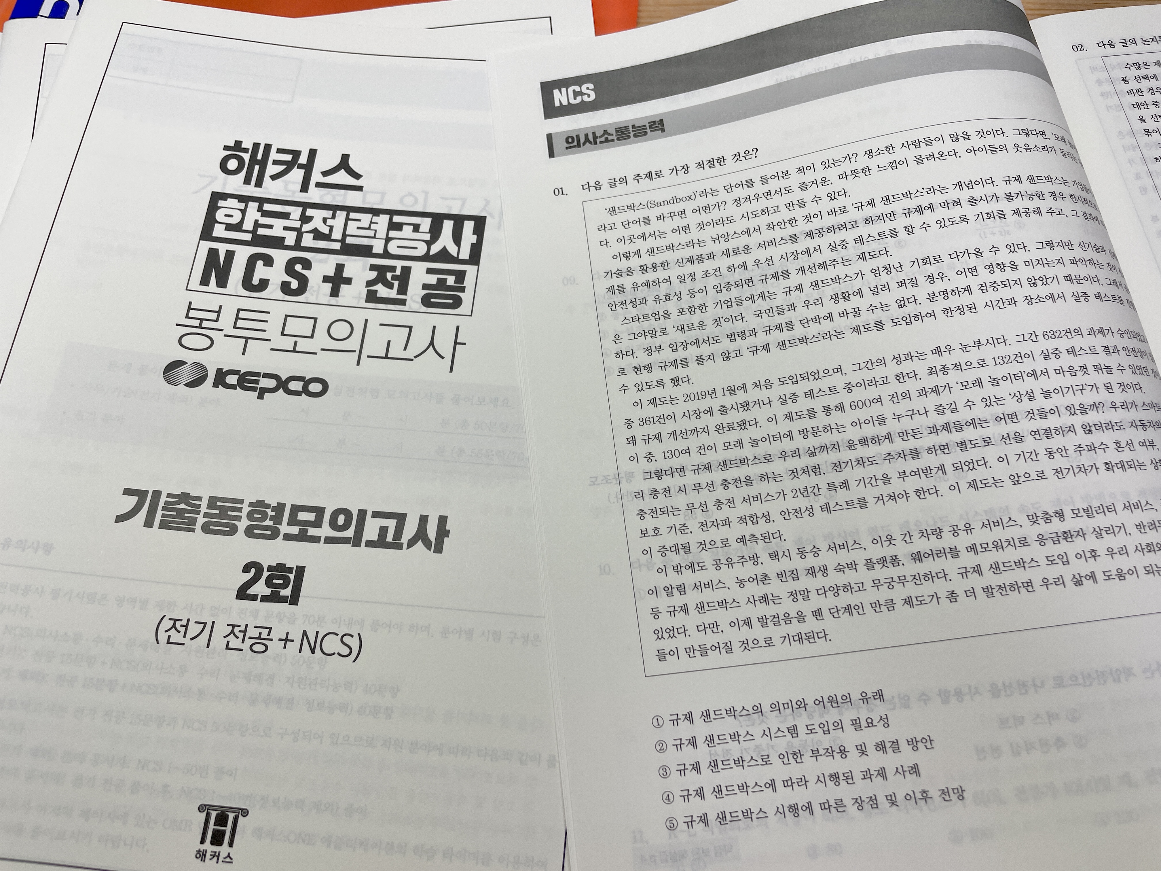 여러 공기업 채용 공고가 올라오고 있는 가운데 한국전력공사를 준비한다면 한번쯤 풀어보면 좋은 봉투모의고사 교재예요.