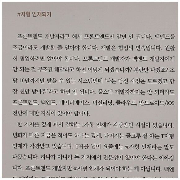 책에서 제공하는 다양한 역량(엔지니어링, 매니지먼트, 비즈니스)은 개발자(주니어·시니어 개발자) 뿐만 아니라 비 개발직군(프로젝트 매니저 등)에게도 유용할 것입니다. 저자가 강조하는 프로덕트 중심으로 생각하는 연습은 개발자를 위협하는 ChatGPT와 같은 AI 서비스가 발전하는 상황에서 꼭 필요할 것입니다.