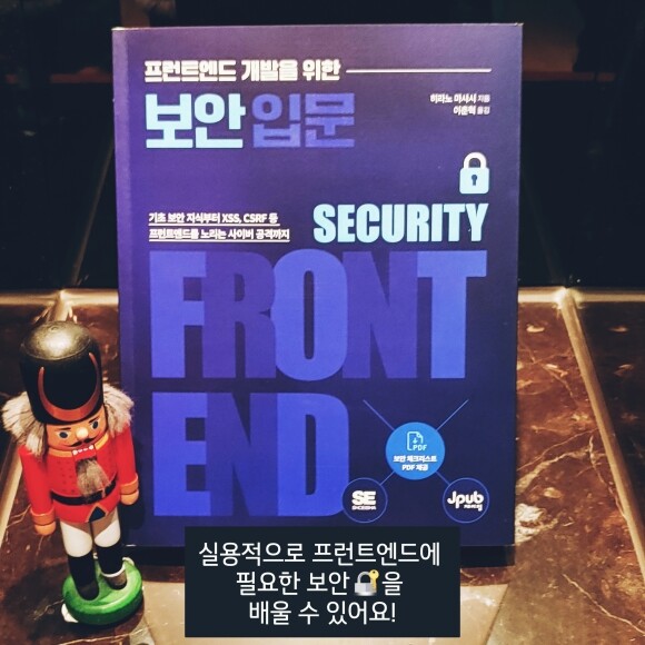 『프런트엔드 개발을 위한 보안 입문』은 프런트엔드에 필요한 보안을 다루는 책으로, 실습 위주와 이해하기 쉬운 설명 덕분에 웹 보안에 입문하기 좋은 책이었습니다.
