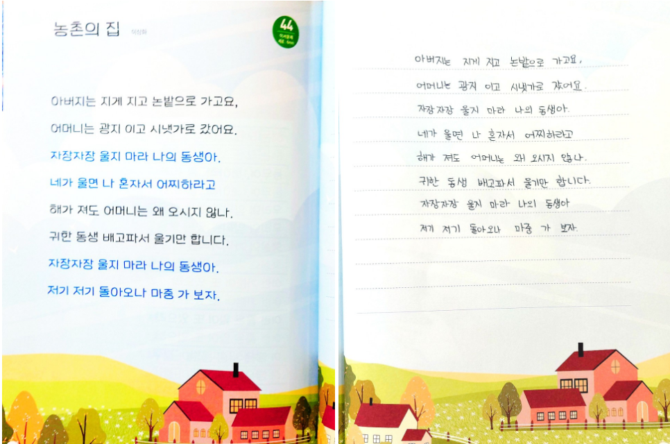 섬집아기의 농촌 버전인 듯한 시 '농촌의 집', 어머니는 시냇가로 갔고, 시 속 화자는 동생을 달래고 있네요~