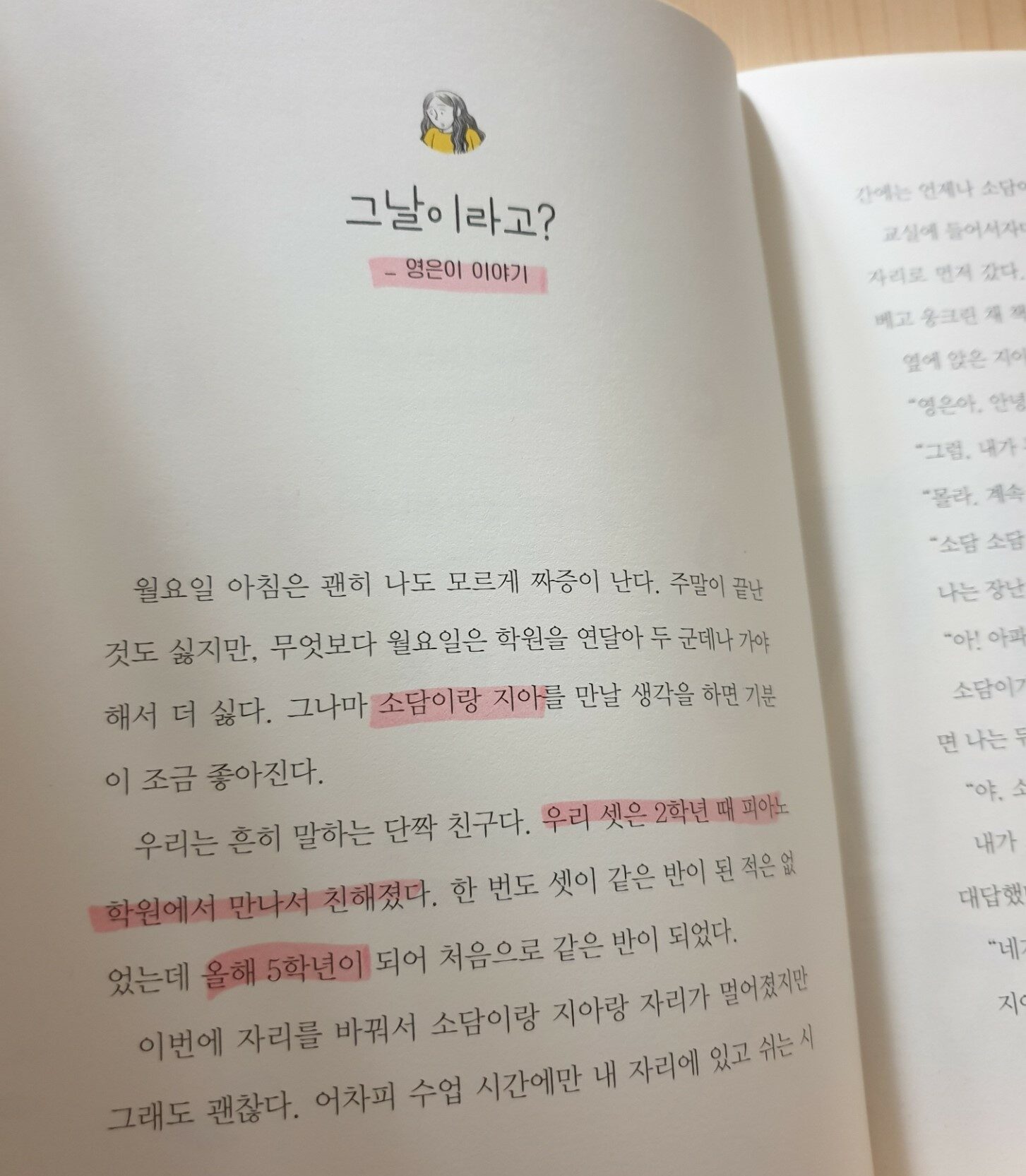 2학년 때 피아노 학원에서 만나 친해진 영은, 소담, 지아가 등장합니다. 5학년이 되면서