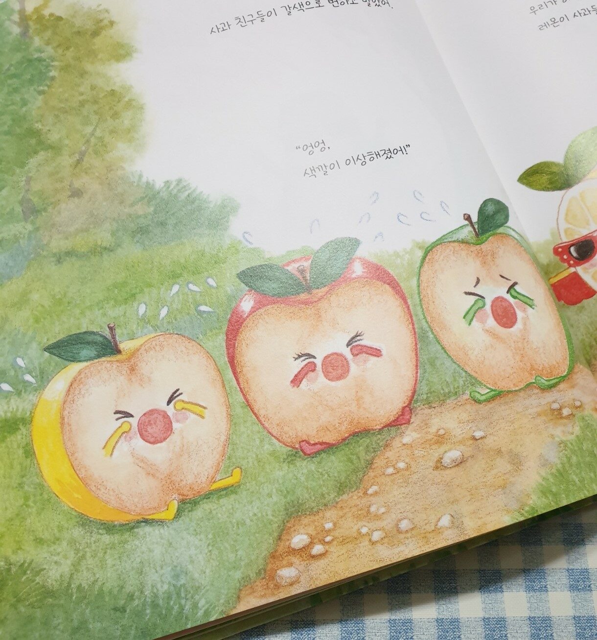 깜찍한 캐릭터들이 잔뜩 등장하는 <과일 채소 히어로즈 >네 번째 주인공은 바로 사과. 몸에도 좋고 사각사각 식감이 좋아 늘 챙겨 먹지요.<악동 바람>의 정체는 누구일지는 꽤 난이도 있는 것 같아요.