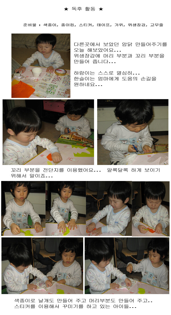 그리고 부지런한 손 책을 보고나서 아이들과 함께 부지런히 암닭을 만들어 봤어요...