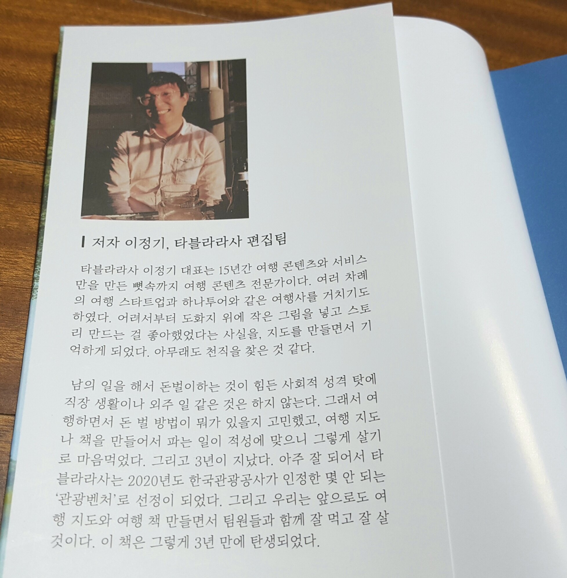이정기 작가님은 15년간 오직 여행 콘텐츠와 서비스만을 만들어 온 여행 콘텐츠 전문가이신데요. 여러 여행 스타트업과 여행사를 경험하며 여행 업계에 있다가 ‘타블라라사’라는 여행 콘텐츠 전문 기업을 만들었고, 2020년 한국관광공사가 선정한 관광벤처기업이 되었다고 합니다.