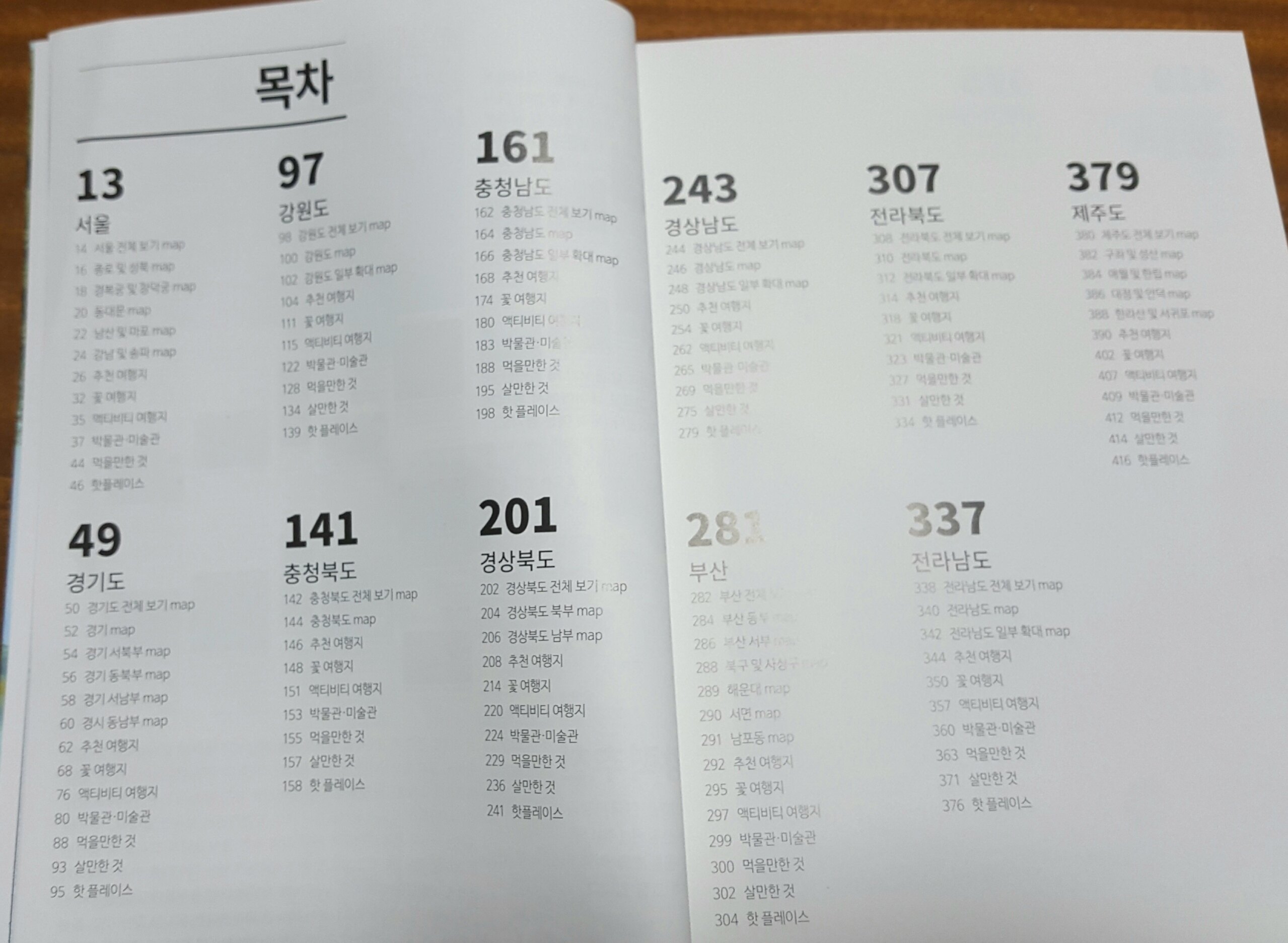 1) 여행 가고자 하는 행정구역을 펼쳐보고 훑어가며 가보고 싶은 곳을 골라 체크해 둔다.