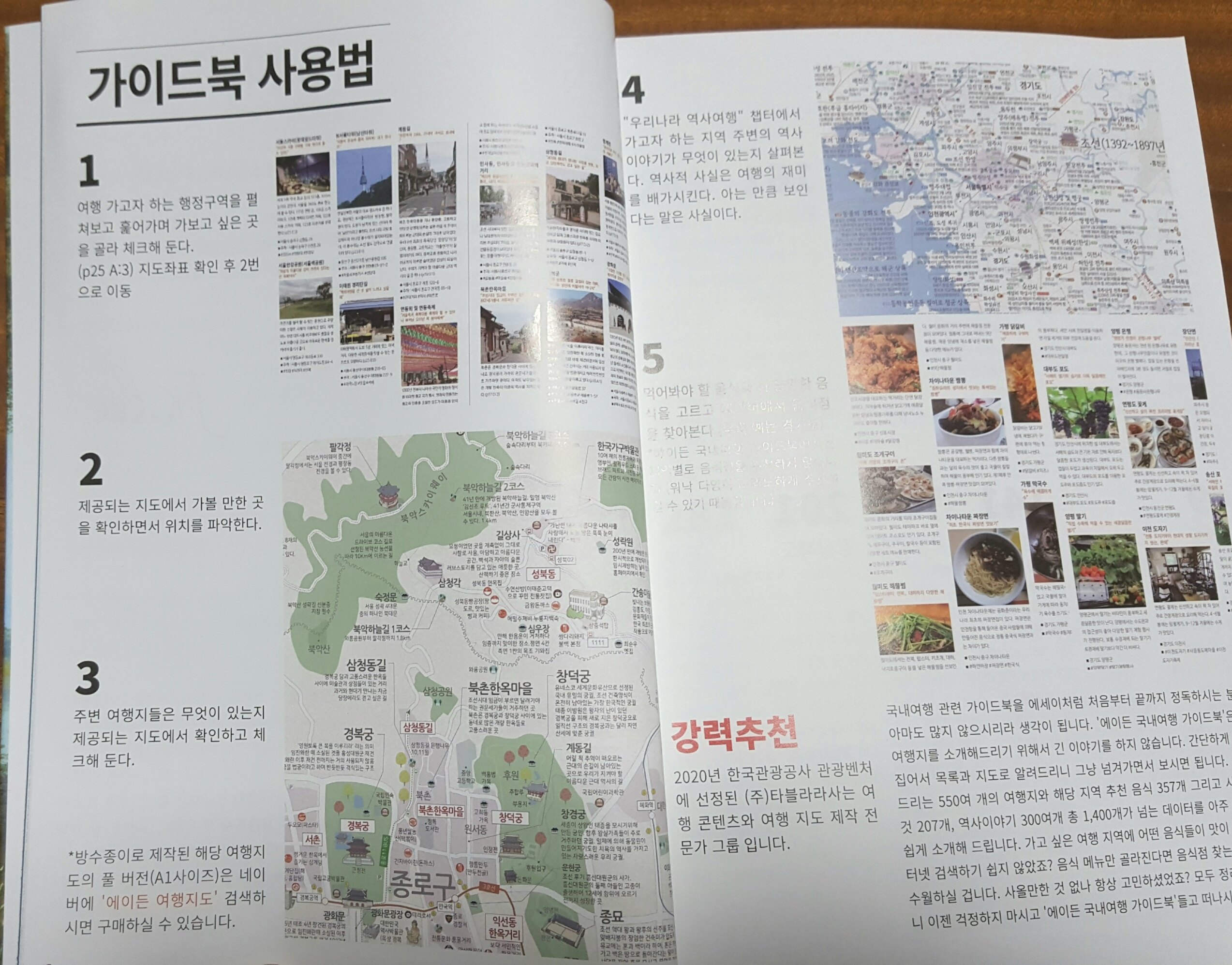 이 책 한 권만 있으면 국내 어디를 가도 두렵지 않을 것 같은 느낌이 드네요. 코로나 때문에 지금은 집콕을 해야하는 시기라 국내 여행을 할 순 없지만 오히려 지금과 같은 때에 이 책의 도움을 받아 전국일주 여행 계획을 멋지게 세워보시는 건 어떠신가요? 집에서 다음 번에 여행을 갈 만한 곳을 찾아보거나 소장용으로도 좋은 책일 것 같아요.