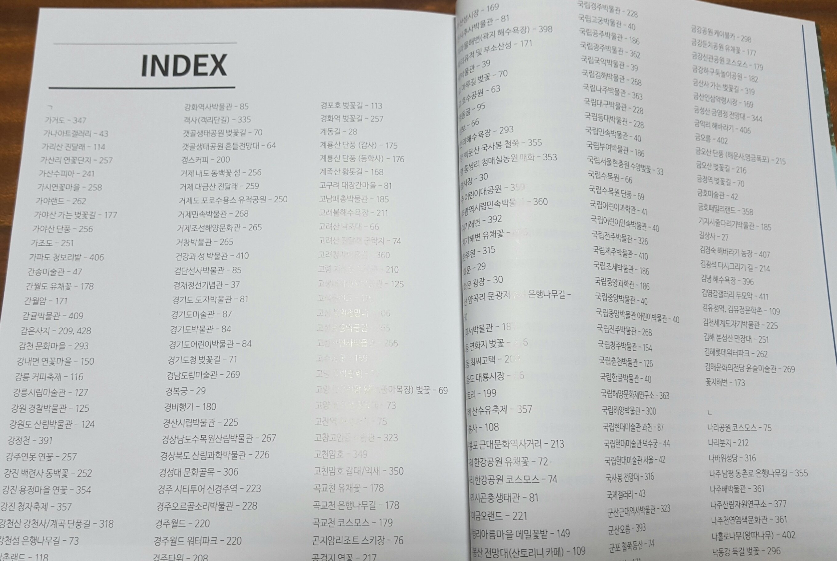 이 책에 나온 여러 장소들을 다시찾기 할 수 있는 INDEX가 정리되어 있어요.