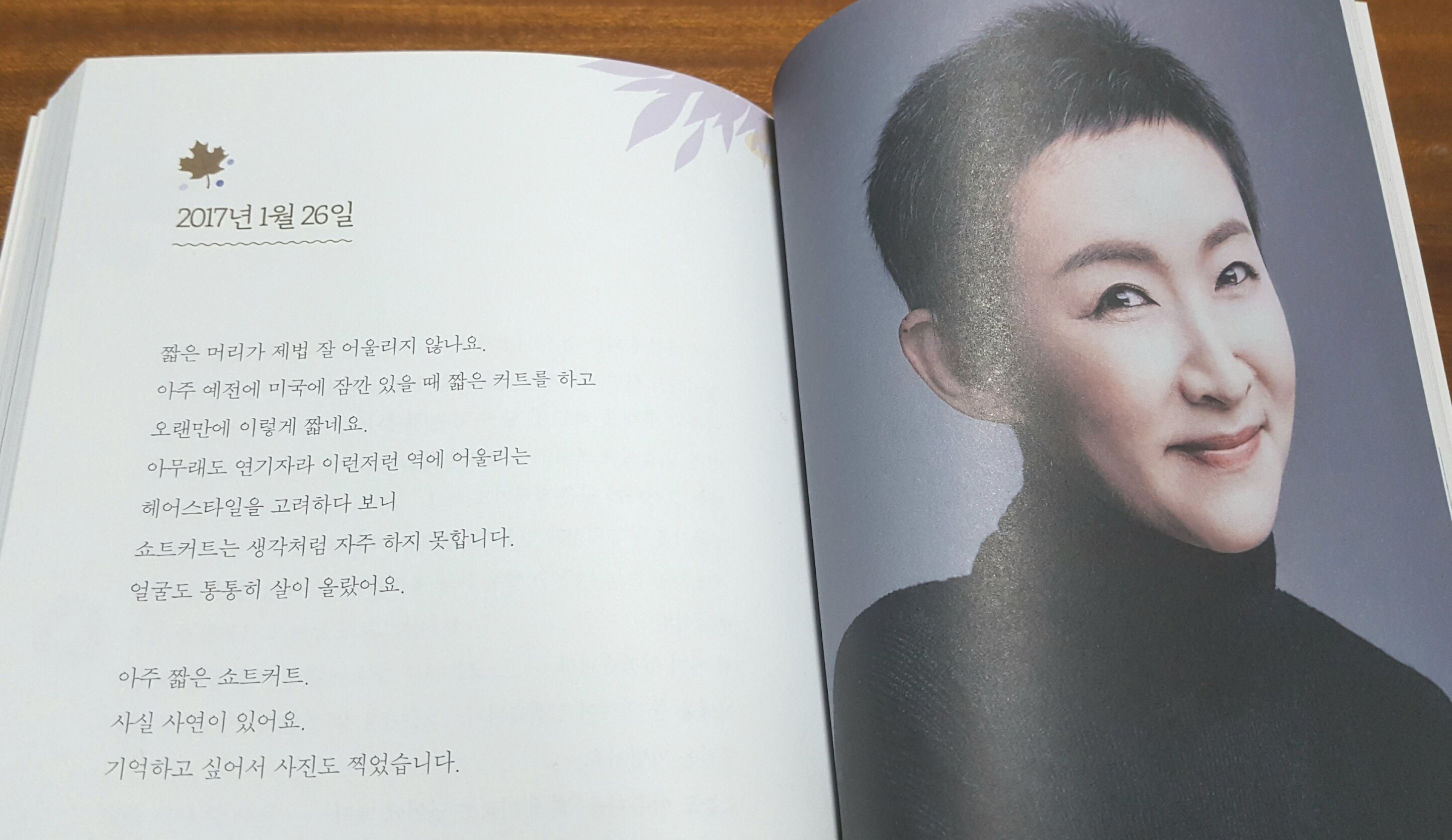 다른 에피소드와 달리 날짜로 되어있는 제목이 눈에 띄었어요. 그리고 바로 옆면에 배우님의 사진이 먼저 눈에 확 들어와서 작품 때문에 숏컷을 시도하셨나 하며 이 부분을 읽게 되었죠.