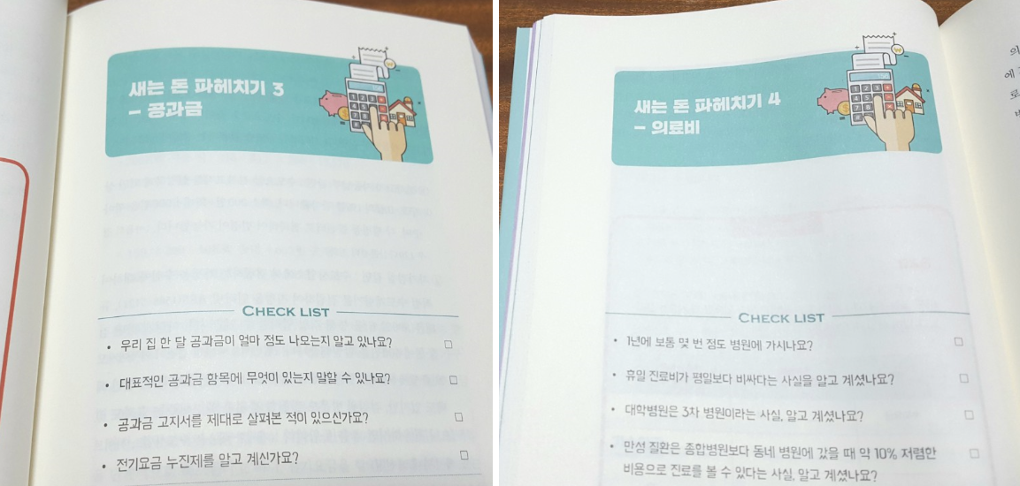 게다가 '새는 돈 파헤치기'라는 코너로 여러가지의 소비를 줄이는 방법을 소개하고 있는데요. 실생활에 적용할 수 있는 직접적인 꿀팁들이 많아서 유익하답니다.