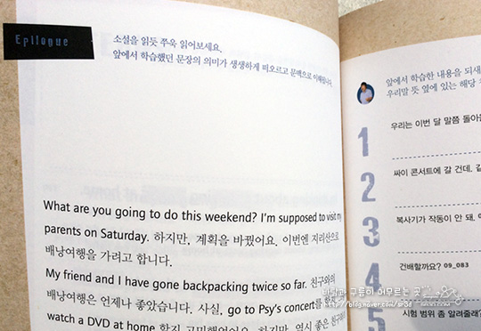 마지막으로 Epilogue 에서는 짧은 독해 문장을 제공하고 있는데, 앞서 학습한 영어 패턴 외에는 한글로 나머지 문장들이 적혀 있어서, 따로 독해를 해야하는 번거로움이 없이 문장 속에서 패턴을 다시 한번 확인해보는 정도로 한번 읽고 지나가면 되는 형식이다.