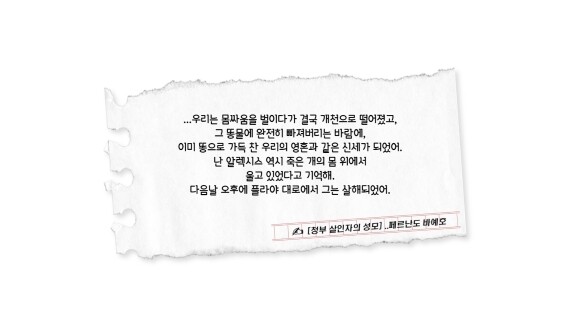 라틴 아메리카 문학은 '마술적 사실주의' 를 구현한 가브리엘 가르시아 마르케스의 작품으로만 접했다. 꿈 속을 걷는 듯한 환상 속에서 현실에 대한 풍자의 언어들이 새롭게 느껴졌다. 마르케스의 작품들 만큼 페르난도 바예호의 작품도 신선하다. 작품 속 인물이 나의 귀에 대고 자신에게 있던 일들을 주저리 주저리 이야기하는 듯한 표현 방식은 이야기에 더 집중하게 만들었다.