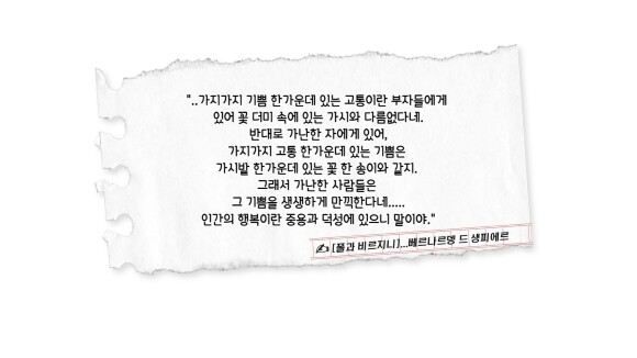 노인의 말처럼 풍요 속에서 피폐해지지 말고, 부족함 안에서 작은 행복을 느끼는 우리가 될 수 있어야하겠다.