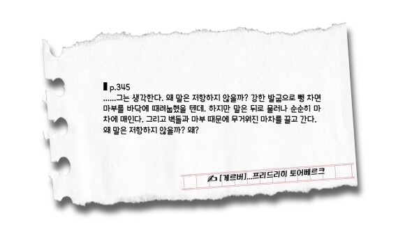 '동서고금' 이라는 사자성어는 동양과 서양, 옛날과 지금을 통틀어 이르는 말이다. 저 먼 곳 유럽, 그것도 아주 오래 전에 창작된 작품 『게르버』를 읽으며 '동서고금'이라는 사자성어가 생각났다. 여기 이곳이나 저 바다 건너 먼 곳이나, 21세기인 지금이나 100전인 오래 전이나 학교와 학생의 대립, 억압과 자유에 대한 열망, 권위주의와 경쟁의 숨막힘은 변함이 없었다.