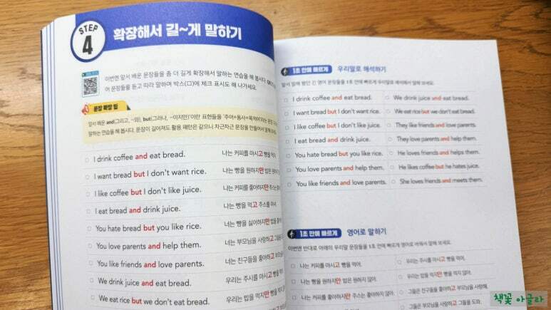 책의 구성으로는 일상에서 흔히 사용할 수 있는 친숙한 문장으로 예시를 들고 이를 바탕으로 문장을 더욱더 확장해 나갈 수 있도록 유도하고 있습니다.