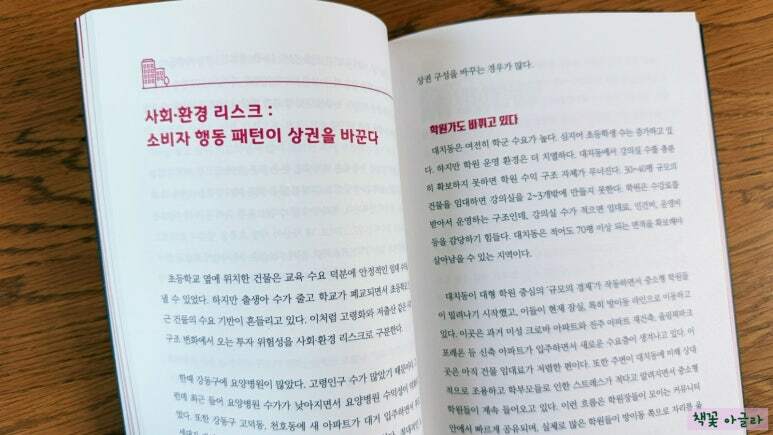 일시적 현상이라기보다는 거스를 수 없는 흐름으로 봐야 하는 공실이라는 배경에는 오프라인으로 물건을 사는 방식이 온라인으로 빠르게 이동하면서 상가 수요 자체가 구조적으로 줄어들었다는 현 부동산 시장의 흐름임을 냉철하게 분석하고 시대 흐름에 맞는 새로운 대응 전략과 관리 매뉴얼의 필요성이 있어야만 다가오는 부동산 변화의 흐름에 맞설 수 있음을 저자를 통해 파악할 수 있습니다.
