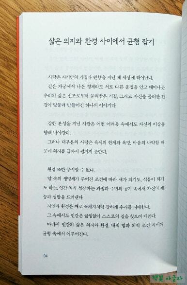 자신의 내면에 귀 기울이고 내면의 힘을 믿고 행동할 때 비로소 스스로 삶을 주도할 수 있음을 저자는 에머슨의 《자기 신뢰(Self-Reliance)》를 필사하게 되는 주 이유라고 이야기합니다.