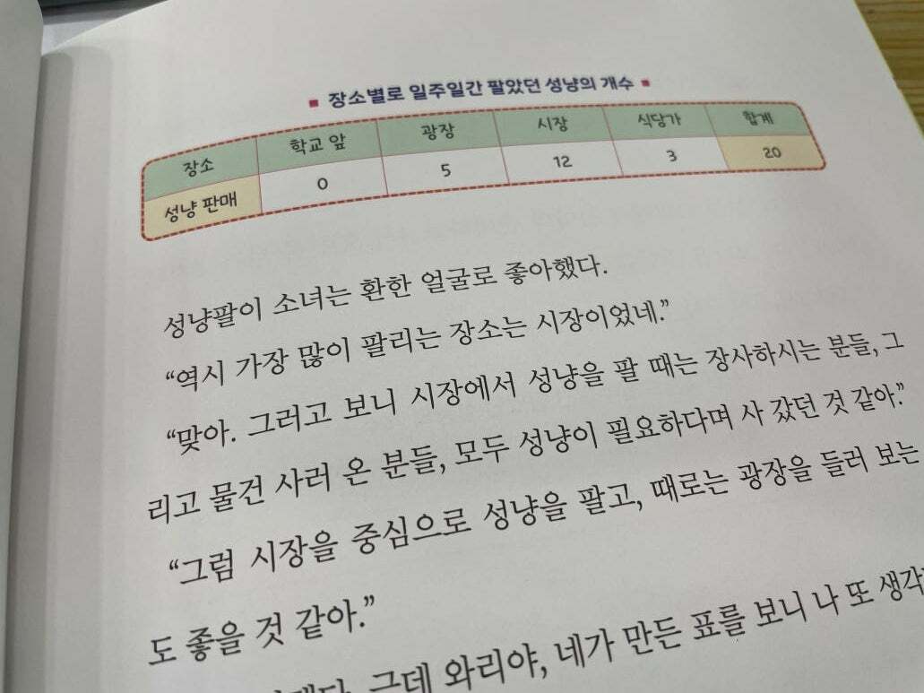 간단하게 말할 수 있는 글을 일부러 길게 만들어서 아이들이 생각을 하도록 유도하는거 같아요.