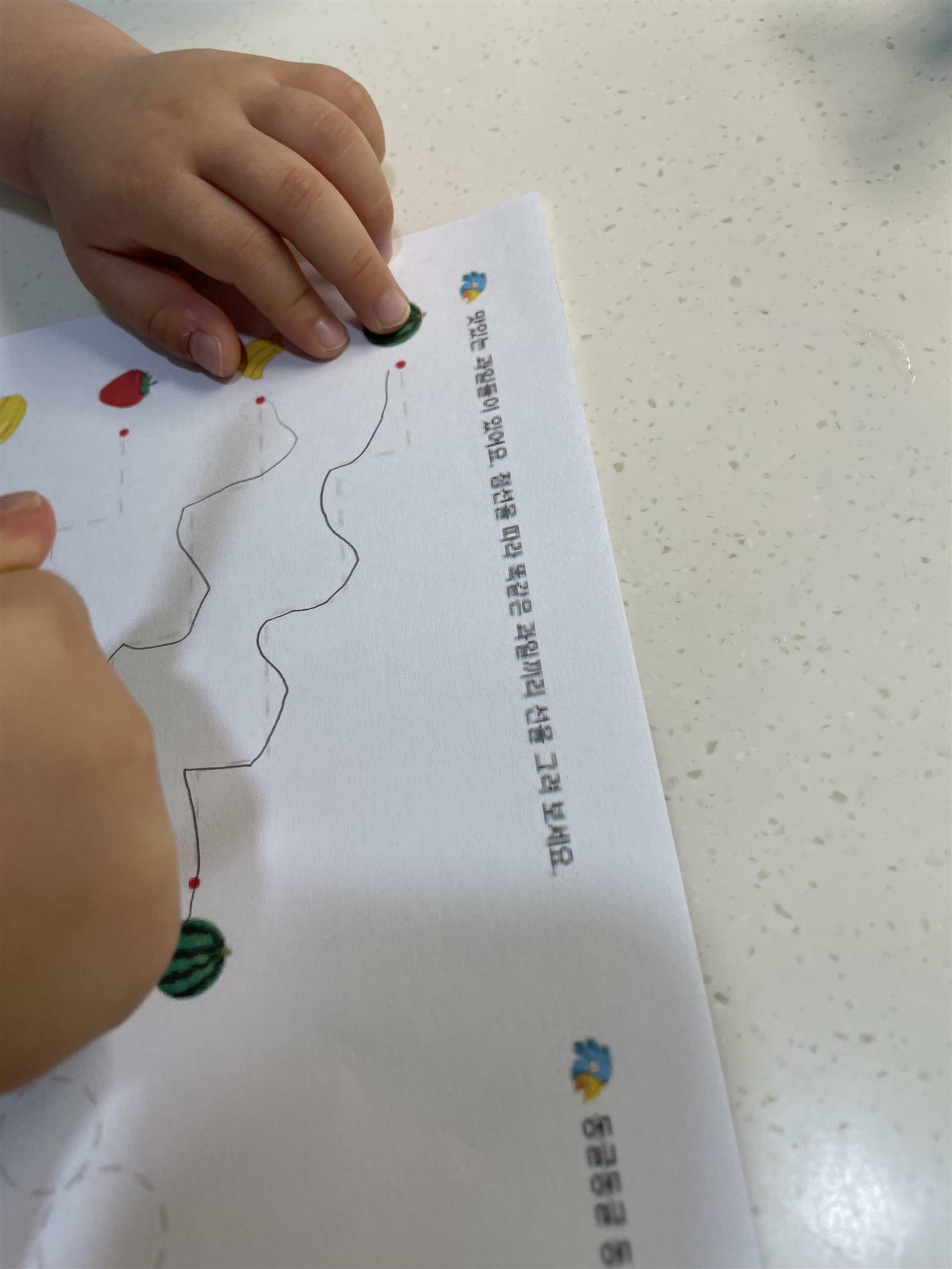 선긋기에서 지시하는 방향(오른쪽, 왼쪽, 위, 아래)을 잘 숙지하고 아이가 하도록 해야 한다고 하네요.