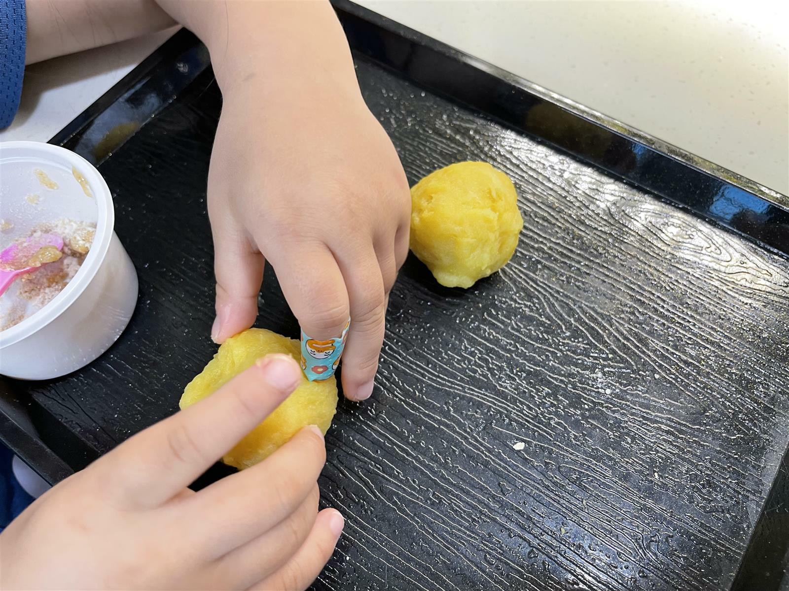 저와 아이는 고양이가 되어 노란 달님 반죽을 꾹꾹 눌러봅니다.