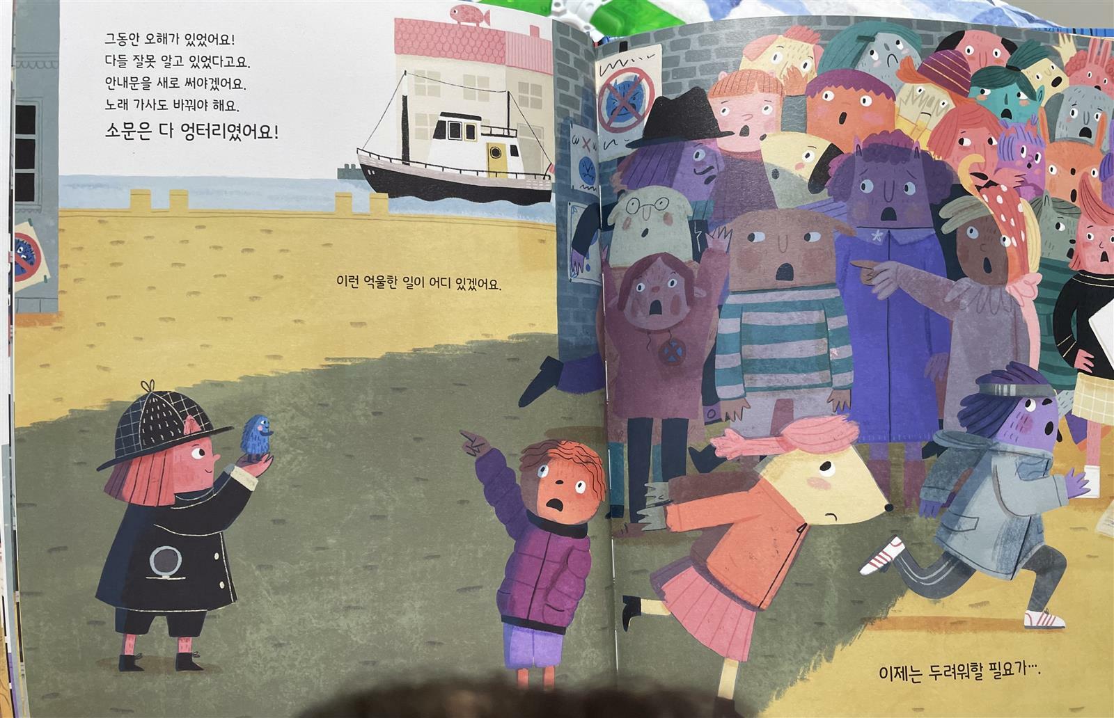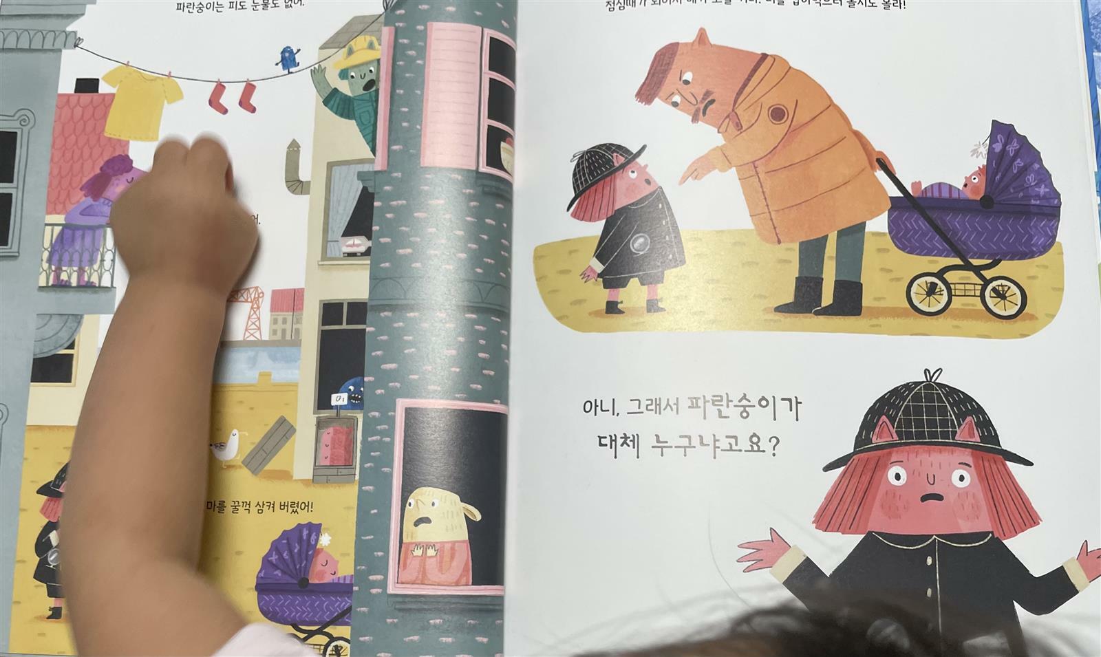 ⚠️주의 파란숭이를 조심하세요! 무시무시한 괴물 파란숭이가 나타나 수군수군 마을 사람들을 괴롭힌다고 하네요. 파란숭이? 처음 들어보는데?! 누구지? 꼬마 탐정은 파란숭이를 조사합니다. 파란숭이는 나무만큼 커다래. 바닷물에서고 헤엄도 쳐. 털이 덥수룩새! 뾰족뾰족 가시투성이에… 온몸이 아주 새파래! 우리 할머니를 잡아 먹었어. 내 앵무새는 파란숭이 발에 밟혔다고. 내 모자도 사라졌어! 사나워! 못됐어! 잔인해! 줄무늬가 있어. 냄새도 고약하지! 이 모든게 사실이야! 꼬마탐정은 파란숭이에 대해 알아볼수록 오히려 혼란에 빠집니다. ”그래서 파란숭이가 대체 누구냐고요?“ 그때, “안녕? 내가 바로 파란숭이야!” 어머나, 작은 푸른 몬스터가 나오네요. 꼬마 탐정은 마을 사람들의 이야기가 오해임을 말하는데요. 근데 꼬마 탐정 뒤로 생기는 커다란 그림자와 그걸보고 놀라 도망치는 마을 사람들 대체 무슨일이 일어날까요?? 참 이상한 일에요. 잘 알지도 못하면서 섣부르게 추측하면 안 되는데… 말을 하기 전 정말인지 확인하고 말을 해야 하는데 참 어려워요. 어른인 저도 가끔은 두서없이 재확인없이 말하는 부끄러운 행동을 하게 되네요. 말의 무거움을 다시 한번 느낍니다. 내가 생각한 내용이 틀린 것이라면 누구가 다시 알려주고 바로잡아 주고 타인이 오해한 내용도 내가 다시 바로 잡아주고 서로 다정하고 친절하게 서로를 돌보며 살아간다면 사랑은 돌고돌아 우리를 지켜주지 않을까 합니다. 그러니 말을 다시 하기 전에 쉿! 조심스러운 말들은 한 번 더 조심스럽게 말하고자 합니다. 흉흉한 소문이 사라져라! [출판사로부터 도서 협찬을 받았고 본인의 주관적인 견해에 의하여 작성함]