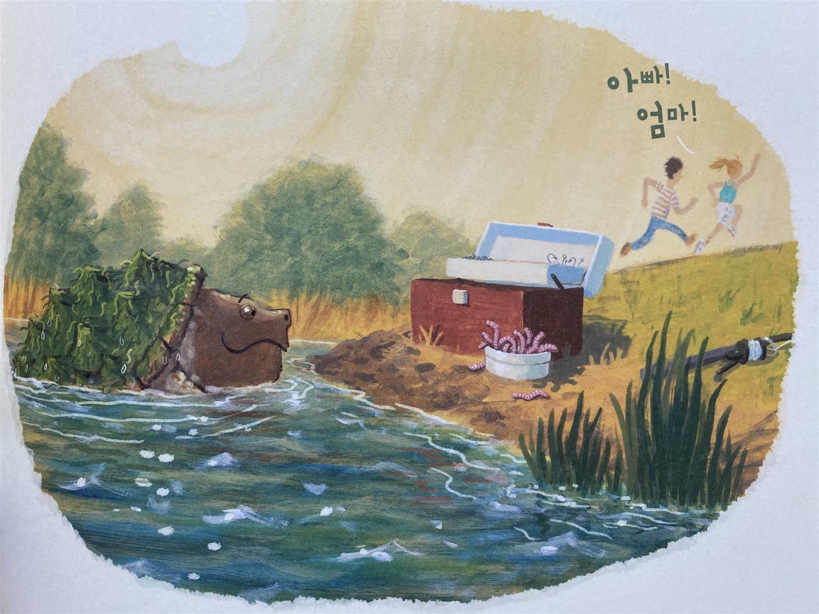 생각한 동물 친구들은 다 같이 힘을 모아 꺼내주려고 했어요.