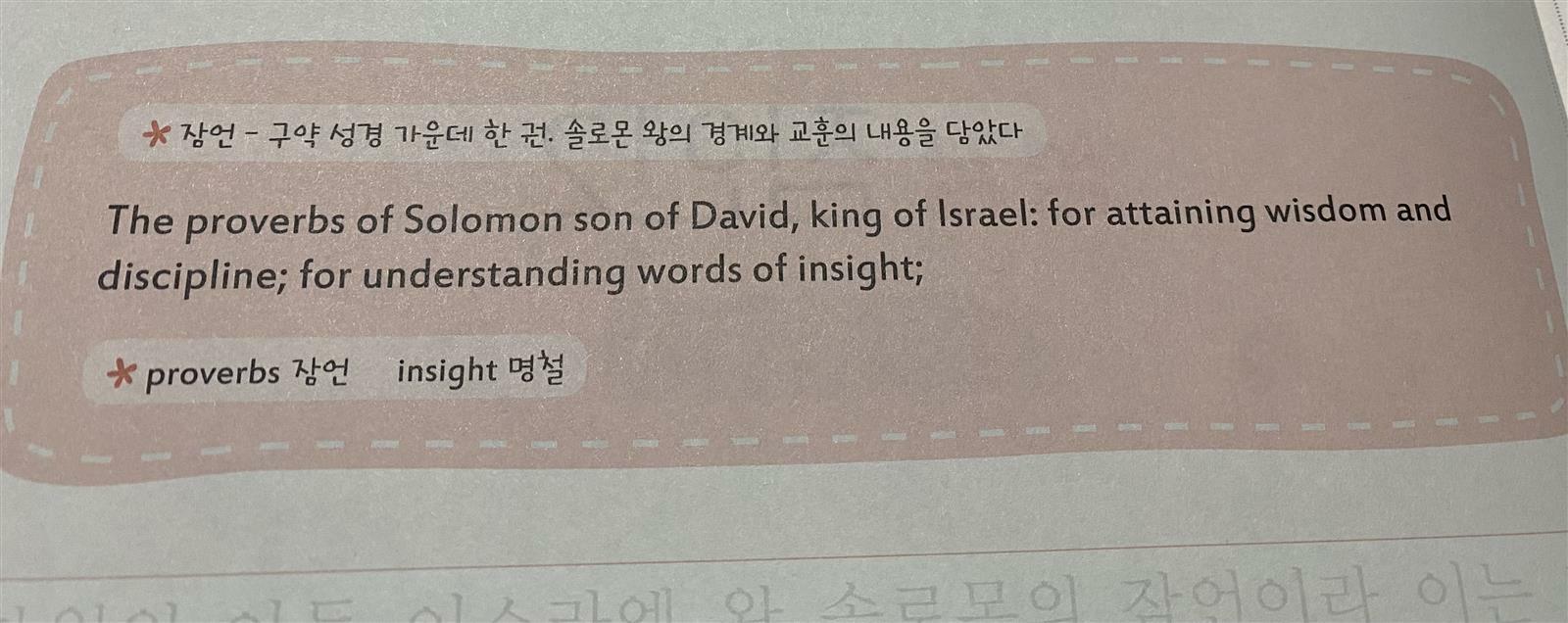 두 번째는 모르는 낱말을 알기 쉽게 설명하였고, 영어 말씀도 있습니다.