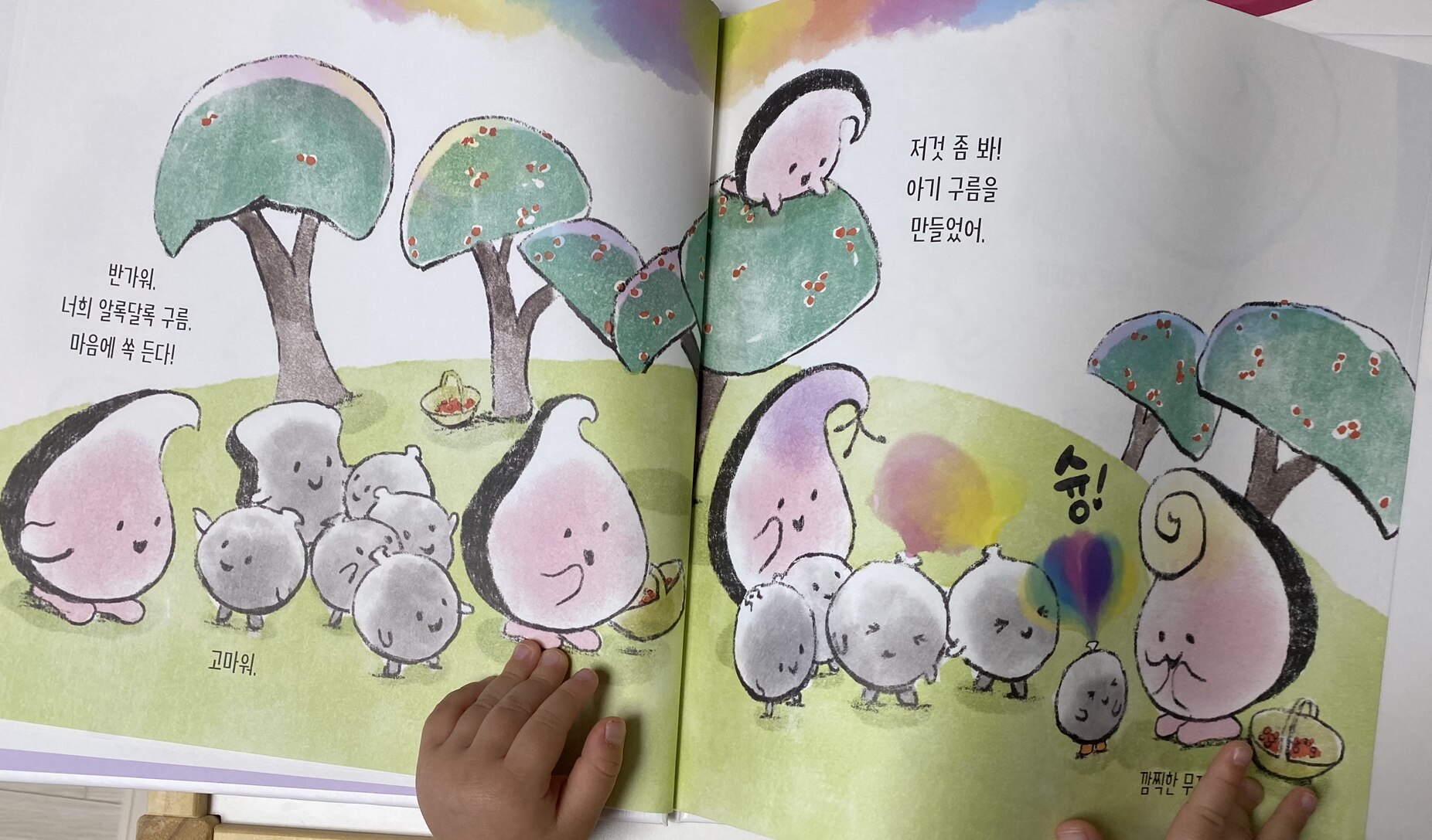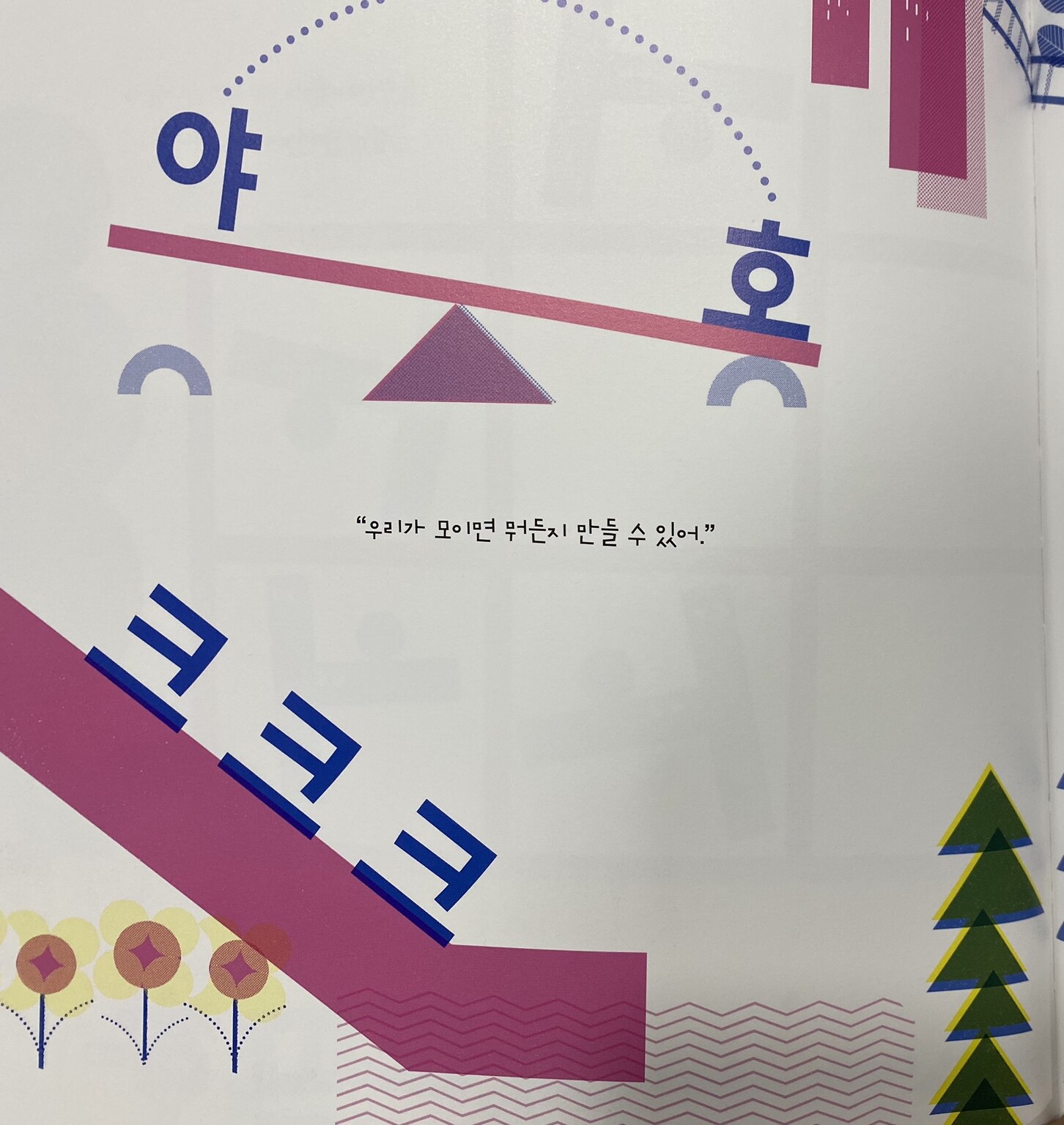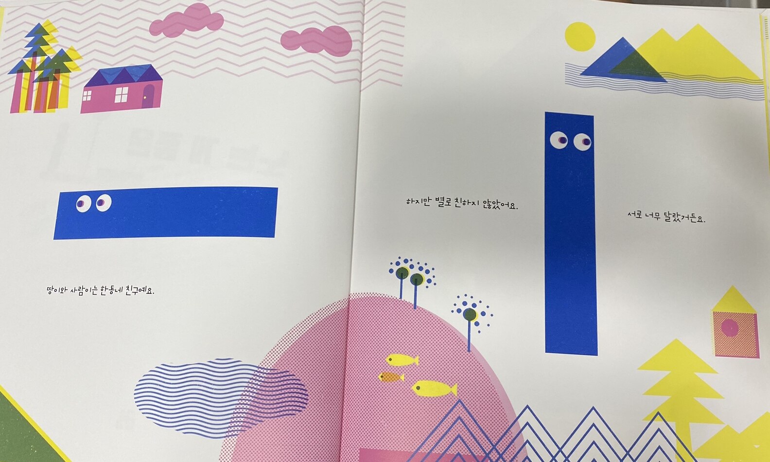 어느 순간, 한글의 모음이 캐릭터로 보여, 이 모음 친구들의 이야기를 만든 책이라고 하네요.