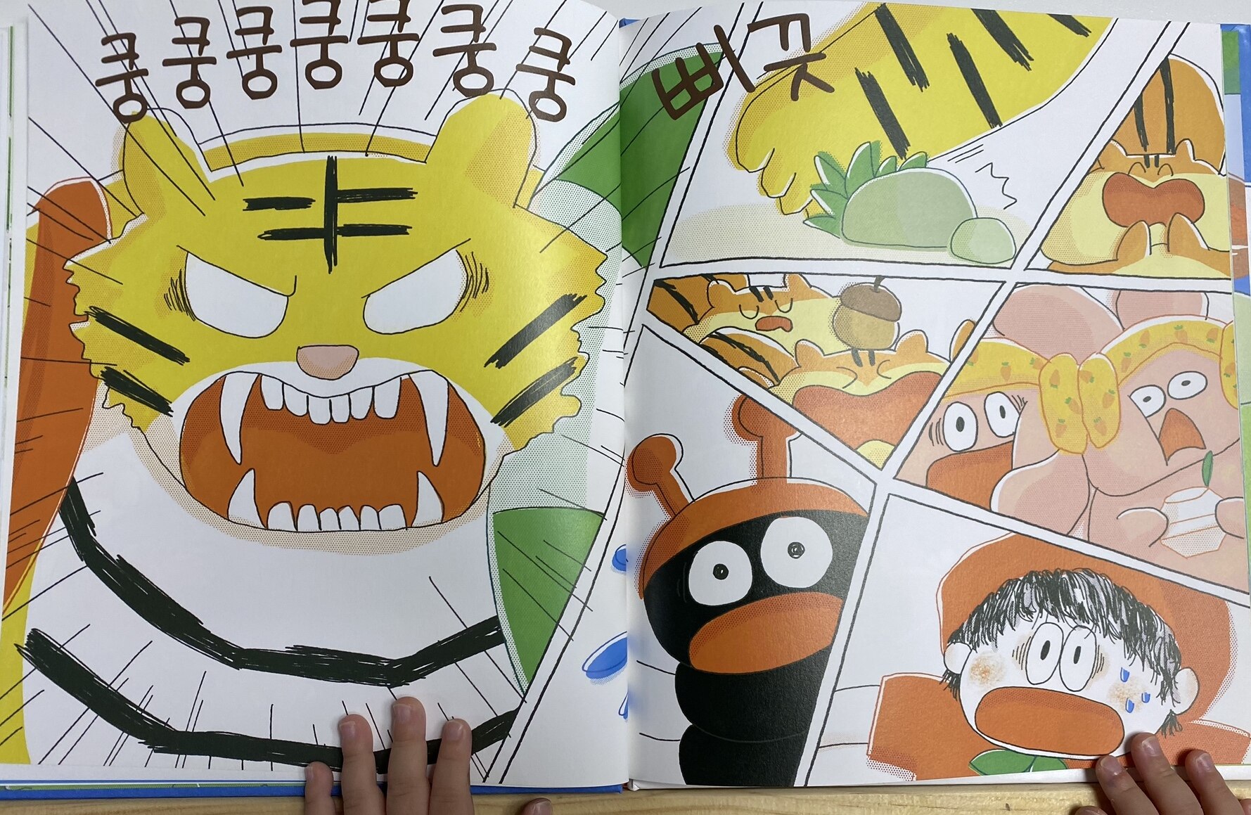 무시무시한 호랑이가 동물 친구들과 아이를 잡아먹으려는 건가요?