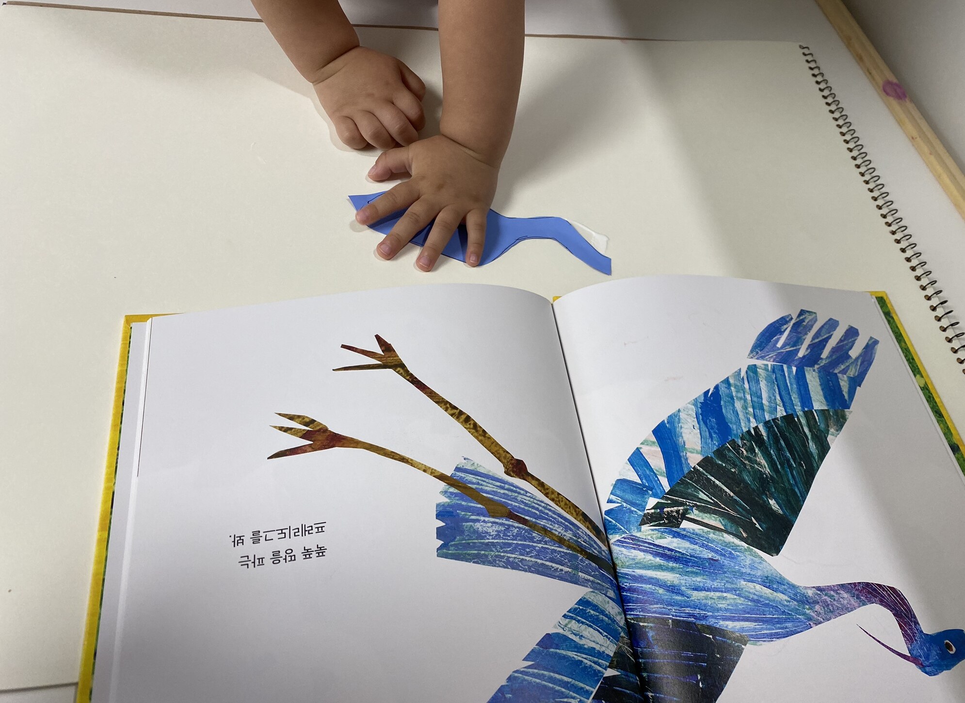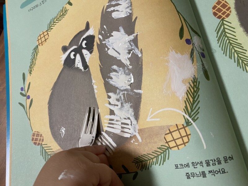 예를 들어 “OOO아, OOO아, 무슨 소리가 들리니?”라고 질문을 하면 동물이 대답을 하고, 그 대답에 해당하는 또 다른 동물의 그림은 다음 페이지를 넘겨야 나옵니다.