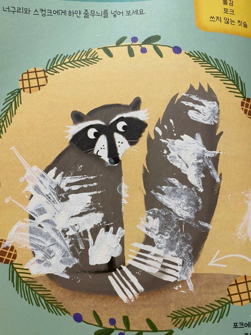 그리고 동물 주위의 배경은 하얀 여백으로 남겨져 있는 것도 있어요. 이 하얀 여백은 단순히 그 안에 있는 대담한 색들과 대비시키려고 만든 것이 아니라, 아이가 상상할 수 있게 숨 쉴 수 있는 공간으로 만듭니다.