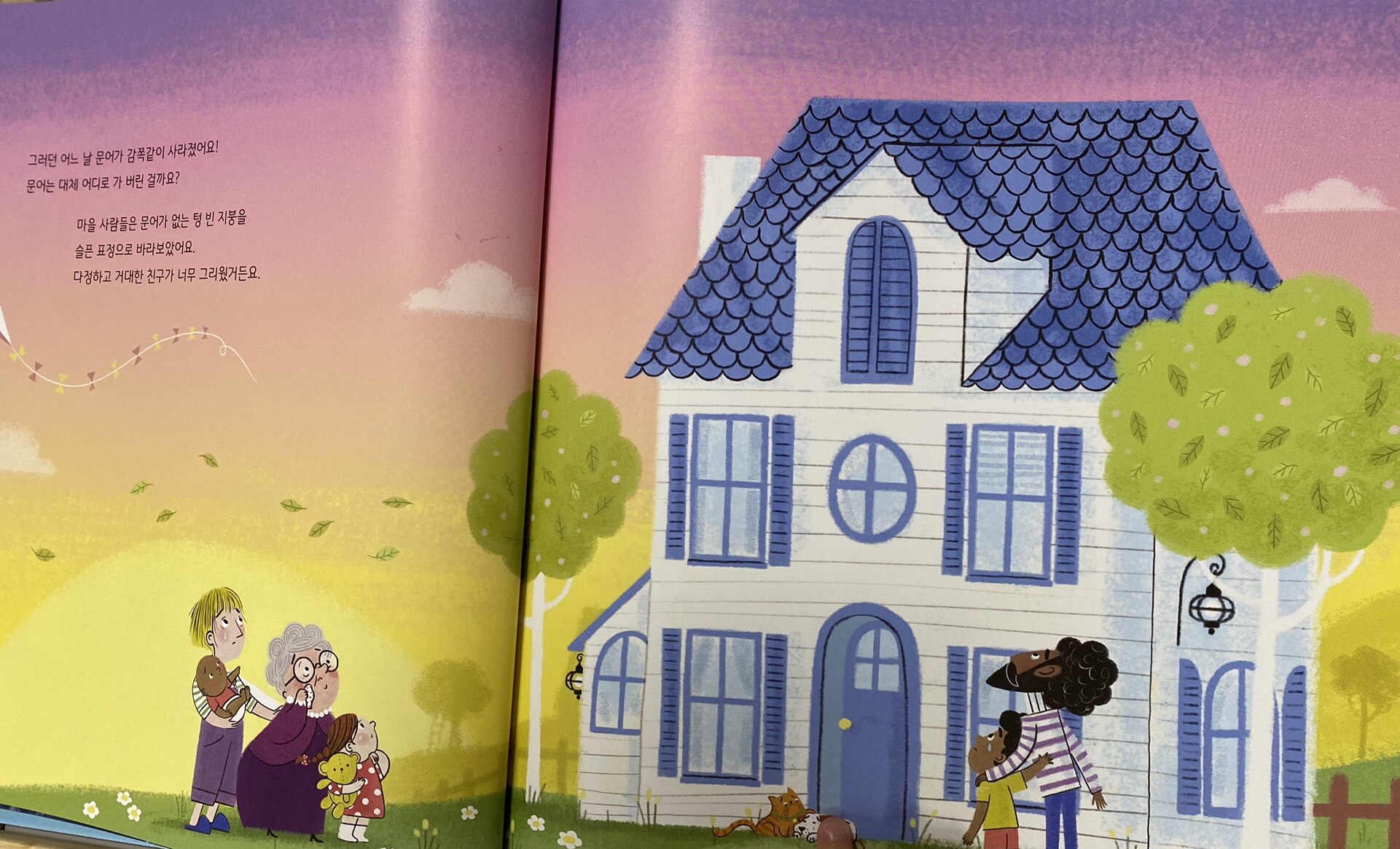 책 첫장에는 마을 풍경이 그려져있어요.