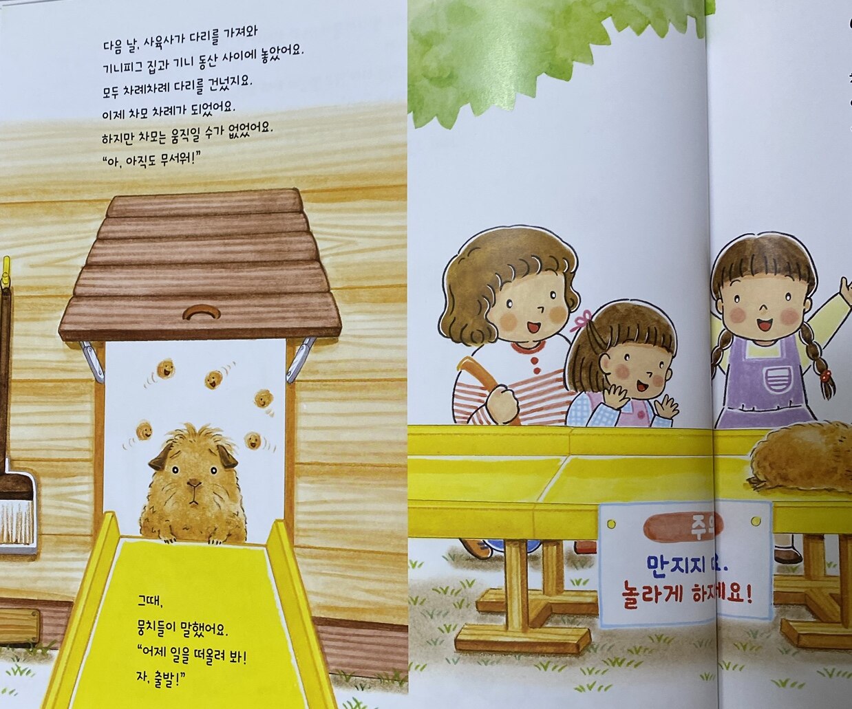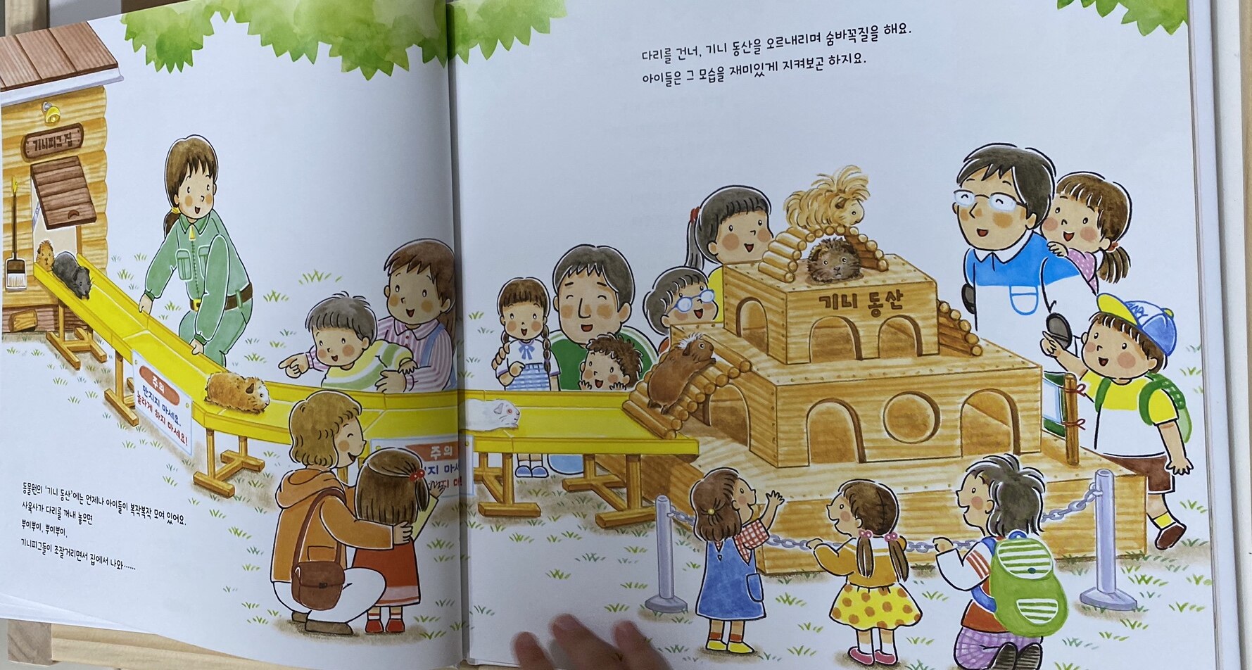 아이들은 기니피그가 다리를 건너, 기니 동산을 오르내리며 숨바꼭질을 하는 모습을 재미있게 지켜보곤 하지요.