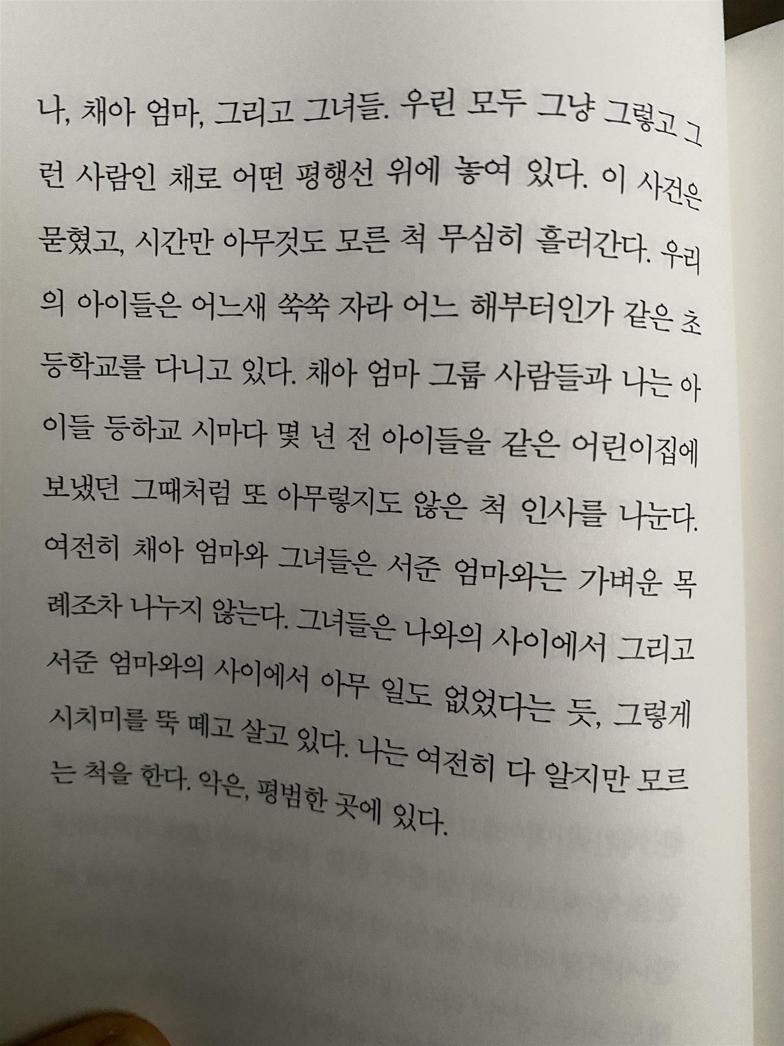 “하지만 내가 철학 책 두어권을 통째로 씹어 삼킨다 한들, 다음번에 이런 비슷한 (은따)사건을 생길때도, 용기 내어 목소리를 낼 수 있을지는 여전히 자신 없다.”