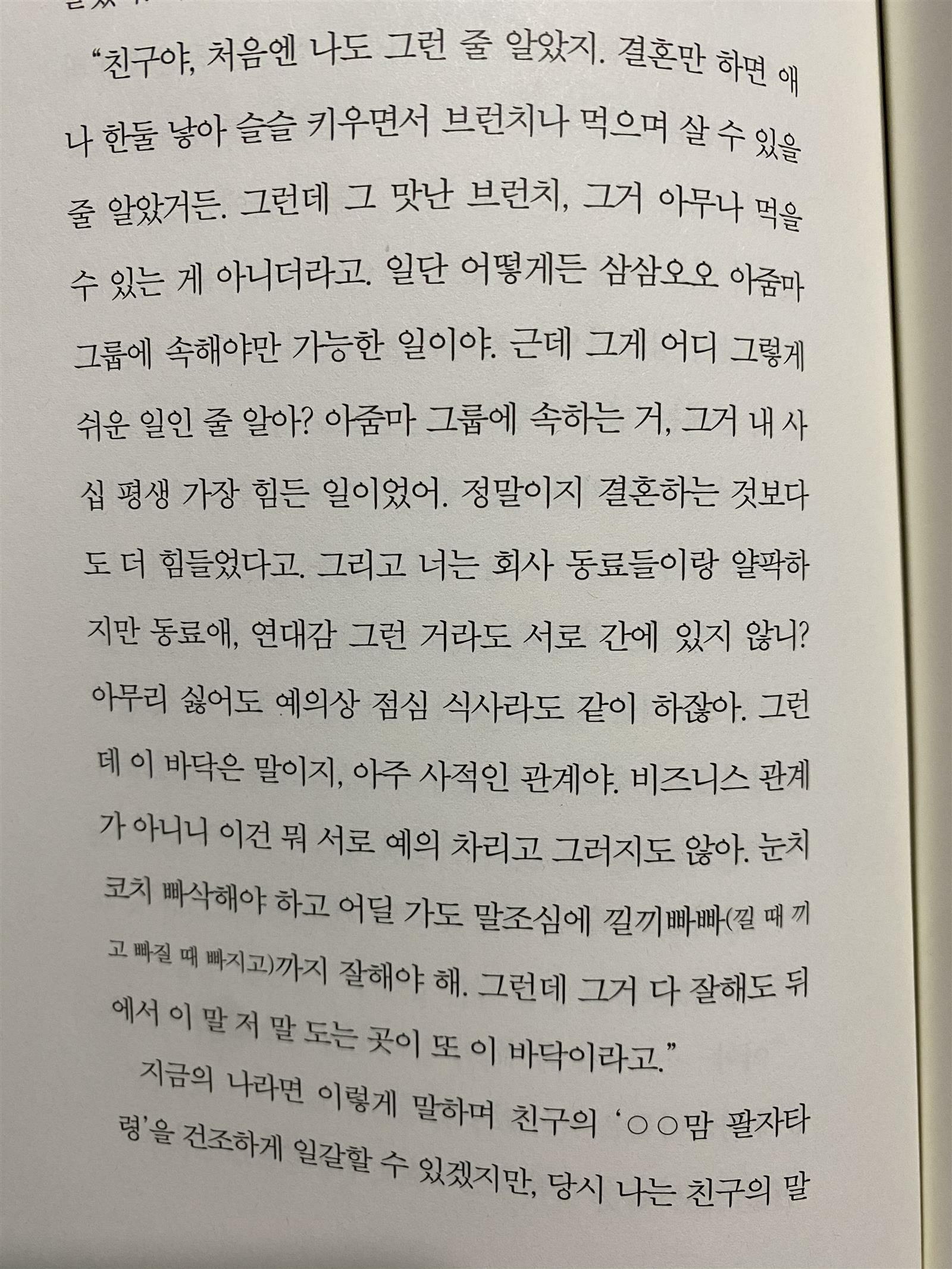 하지만 박혜란 저자는 브런치는 아줌마들의 작은 사회생활의 시작이자 끝, 이라고 정의합니다.
