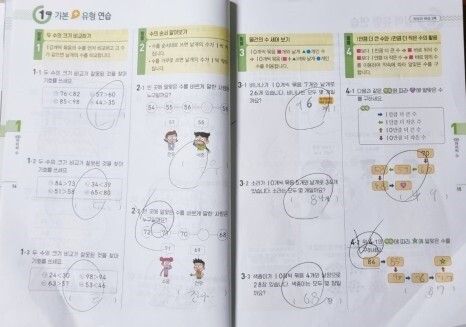 수학 리더 문제집은 아이들이 참 좋아해요. 아마 이런 개념 설명부터 아이들의 눈높이에 잘 맞추어서 그런 게 아닐까 싶긴 합니다. 이 설명 그림을 어찌나 재미있게 보던지 각 단원마다 이런 그림 설명이 매우 마음에 든답니다.