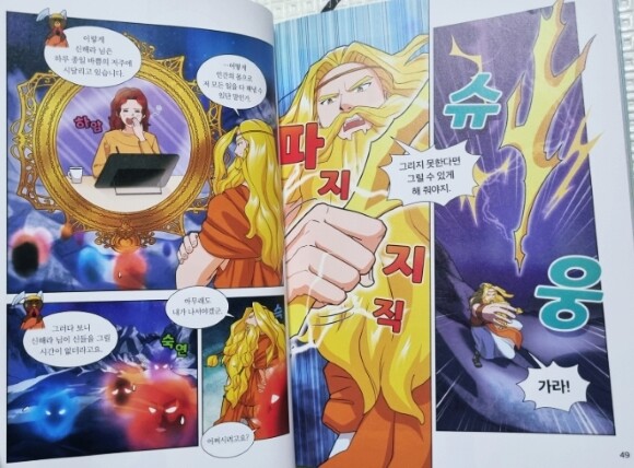 그렇게 신해라의 손끝에서 하나, 둘 모습을 되찾아가는 올림포스의 신들!!! 과연 제가 받고 싶어하는 축복은 무엇일까요? 궁금하지 않나요? 또 형체를 되찾은 신들의 모습도 하나하나 밝혀지는 게 너무 재미있답니다 ^^ 이렇게 재미있는 설민석의 그리스로마신화!! 더 재미있게 보는 법 알려드릴까요? 그리스로마신화를 처음 접한 아이들이라도, 이미 본 아이들이라도 만화가 신해라 가족에게 벌어진 신기하고 놀라운 일들이 나에게 벌어진 일들이라고 생각하면서 이야기에 흠뻑 빠져드는 겁니다. 내가 주인공이라고 상상하는거죠 ^^ 그러면 최고의 이야기 전달자 설쌤이 들려주는 이야기가 마치 직접 읽어 주는 것처럼 귀에 쏙쏙 들어온답니다!