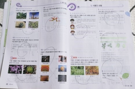 백점 과학을 보면 우리 아이 교과서와 비교를 해 볼 수 있어요. 우리 아이 과학은 아이스크림 미디어 출판사를 이용하고 있어서 교과서별 쪽수를 찾아봐도 우리 아이가 어디를 배우는지 얼마큼 배웠는지 확인해 볼 수 있겠더라고요. 그래서 학기 중에 예, 복습용으로도 좋은 것 같아요.