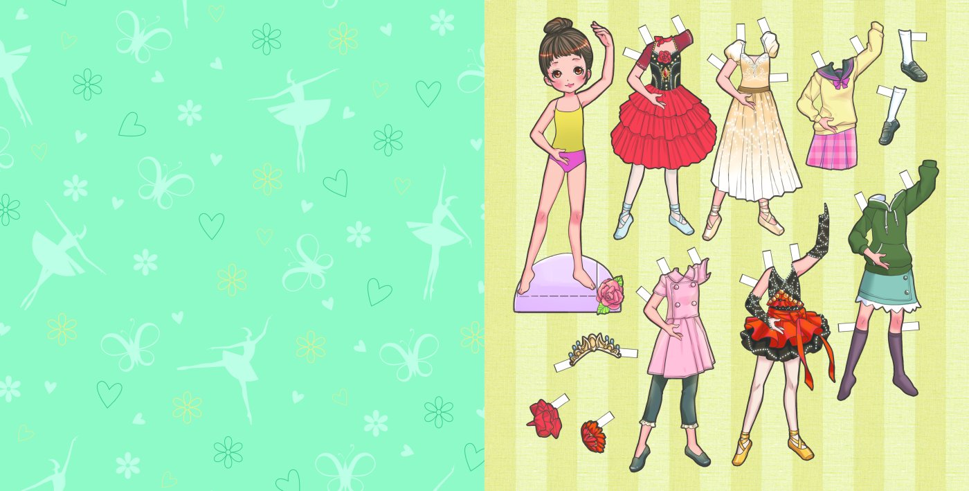 피루에트를 비롯해 발레의 여러 기본자세를 눈으로 확인하고 손으로 칠하거나 종이옷을 입히며 배워 나갈 수 있습니다.