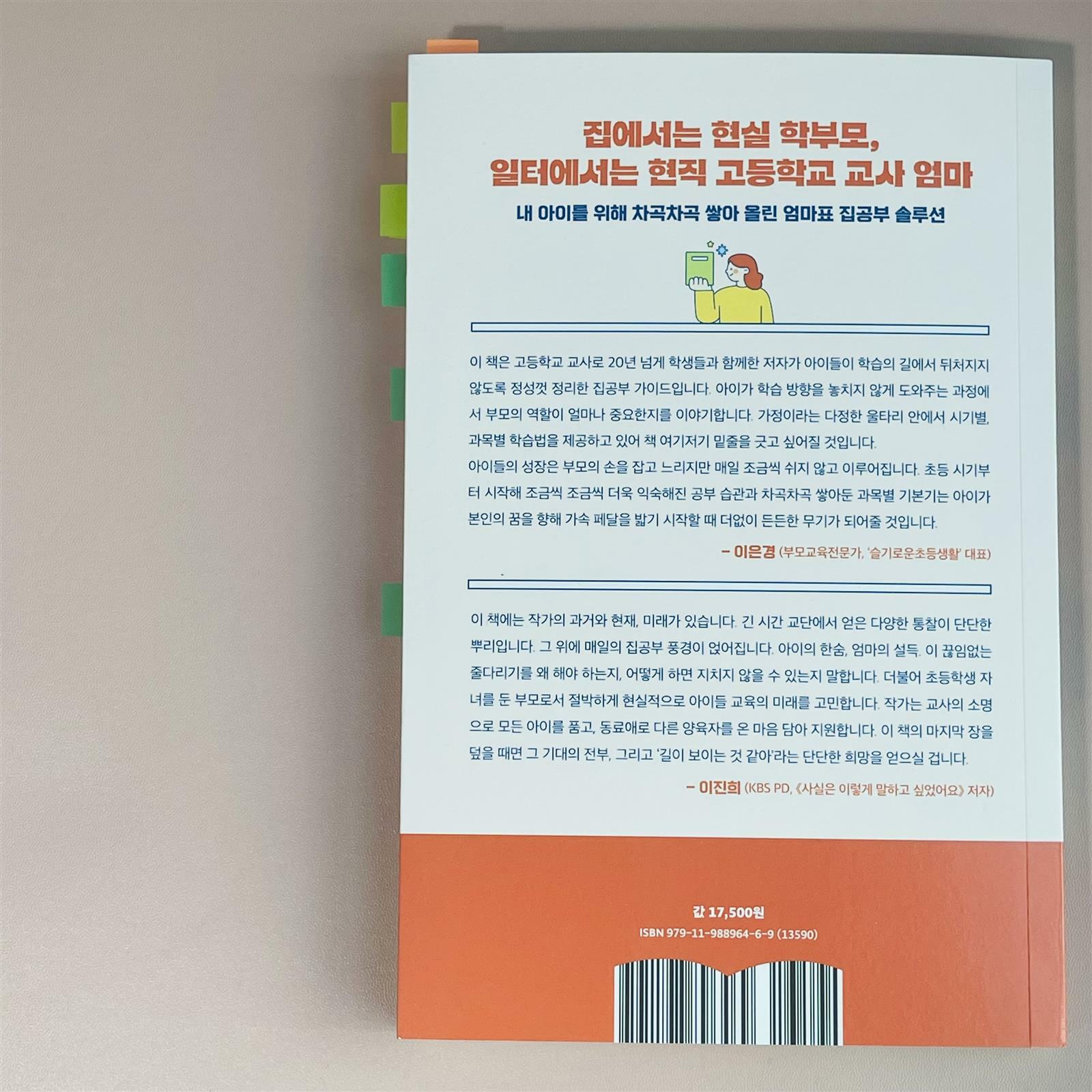 운동 이외에 학습을 위한 학원을 다니고 있지 않고 오로지 집에서만 집공부 하는 아이에 대해 확고한 나만의 #집공부 철학이 있지만 주변 학원 다니는 아이의 친구들 이야기를 들을때면 가끔씩은 이런 생각이 들 때도 있다. “현재 내가 아이를 위해 한 선택이 옳은것일까?” . 나의 이런 마음을 아주 꿰뚫어보고 엄마의 마음을 좀더 다지게 해주는 책을 만났다. . . ✔️ (18p) 공부는 ‘하고 싶다’의 영역이 아니라 ‘해야 한다’ 영역임을 잊지마세요. 주어진 공부는 반드시 참고 배워야 합니다. 스스로 하겠다는 마음이 생길 때까지 기다리면 그 시기에 꼭 배우고 익혀야 할 것을 놓칩니다. ✔️ (80p) 스스로 읽기는 천천히, 자연스럽게, 자발적으로 혼자 읽을 때까지 기다려야 합니다. ✔️ (81p) 스스로 읽기가 맞습니다. 스스로 재미있어서 자발적으로 읽을 때까지 충분히 읽어주세요 ✔️ (82p) 책이 재미있어서 스스로 읽게 만드셔야 합니다. 더불어 전자기기 사용을 최대한 제한하고 관리하는 게 맞습니다. 아이에게 적당한 놀시간이 필요합니다. 여유 있는 시간에 전자기기는 사용할 수 없으니 ‘심심한데 책이나 보자’ 하도록 만들어주세요. ✔️ 독서는 즐겁게 읽어야 지속성이 생깁니다 . . 이외에 책을 읽지 않는 아이에게 책을 읽게 하는 방법, 초등부터 고등까지 나이에 맞는 책 추천 그리고 책을 읽지 않아도 문해력을 높일 수 있는 대화방법 등등 집공부에 대한 부분 뿐만 아니라 어떻게 하면 아이들이 책을 즐겨 읽을 수 있는지에 대한 컨설팅도 준비되어 있다. . 뒷부분으로 갈수록 우리 엄마들이 아이 공부에 있어 조금은 관대해 질 수 있는 말들도 기록되어 있으니 1등급 집공부 학습법 !! 📚 완전 추천 !! . 우리 아이 공부에 있어서 책읽기에 있어서 마음을 다 잡는 시간이 되었으면 한다. 1등급 집공부 학습법 📚 많.관.부 :)