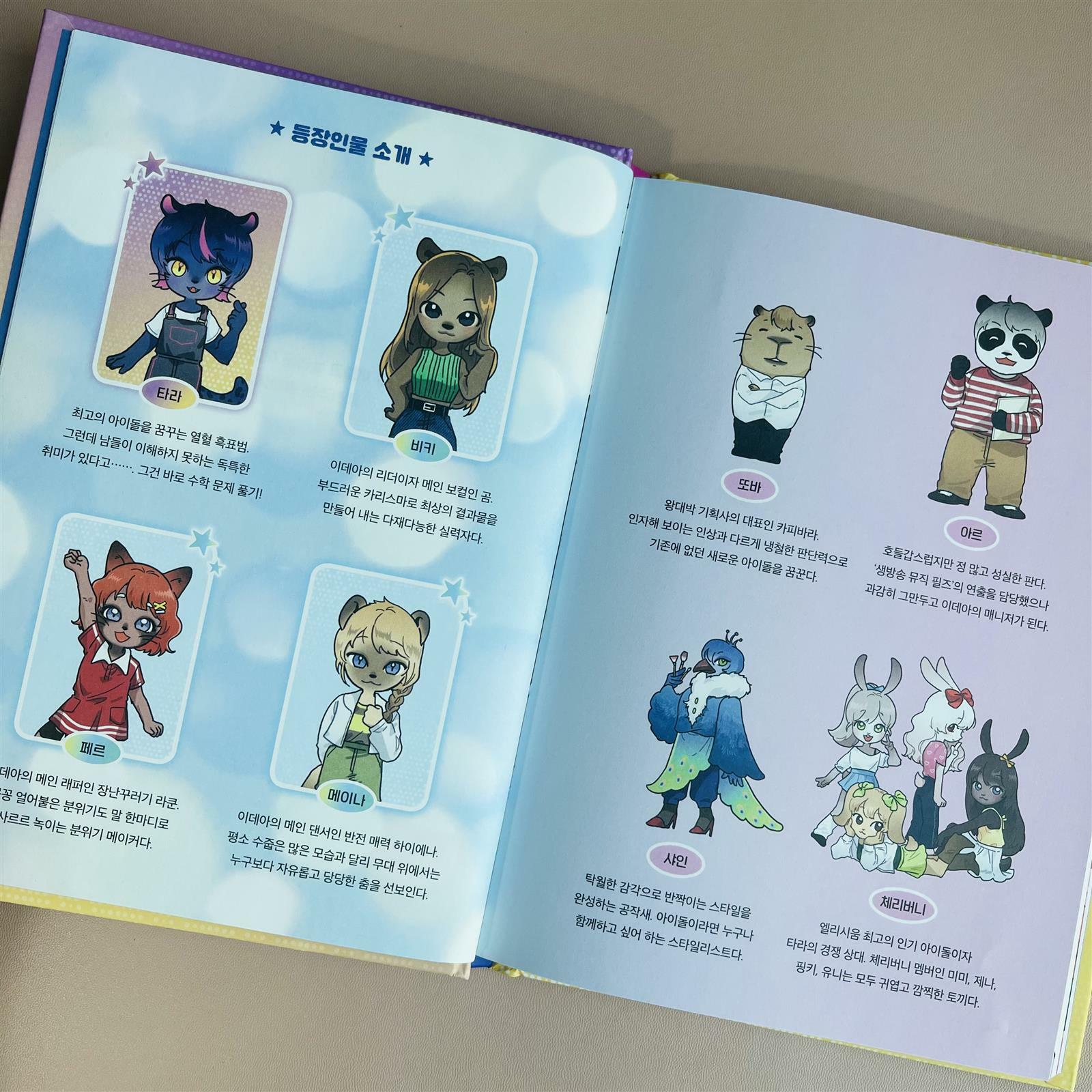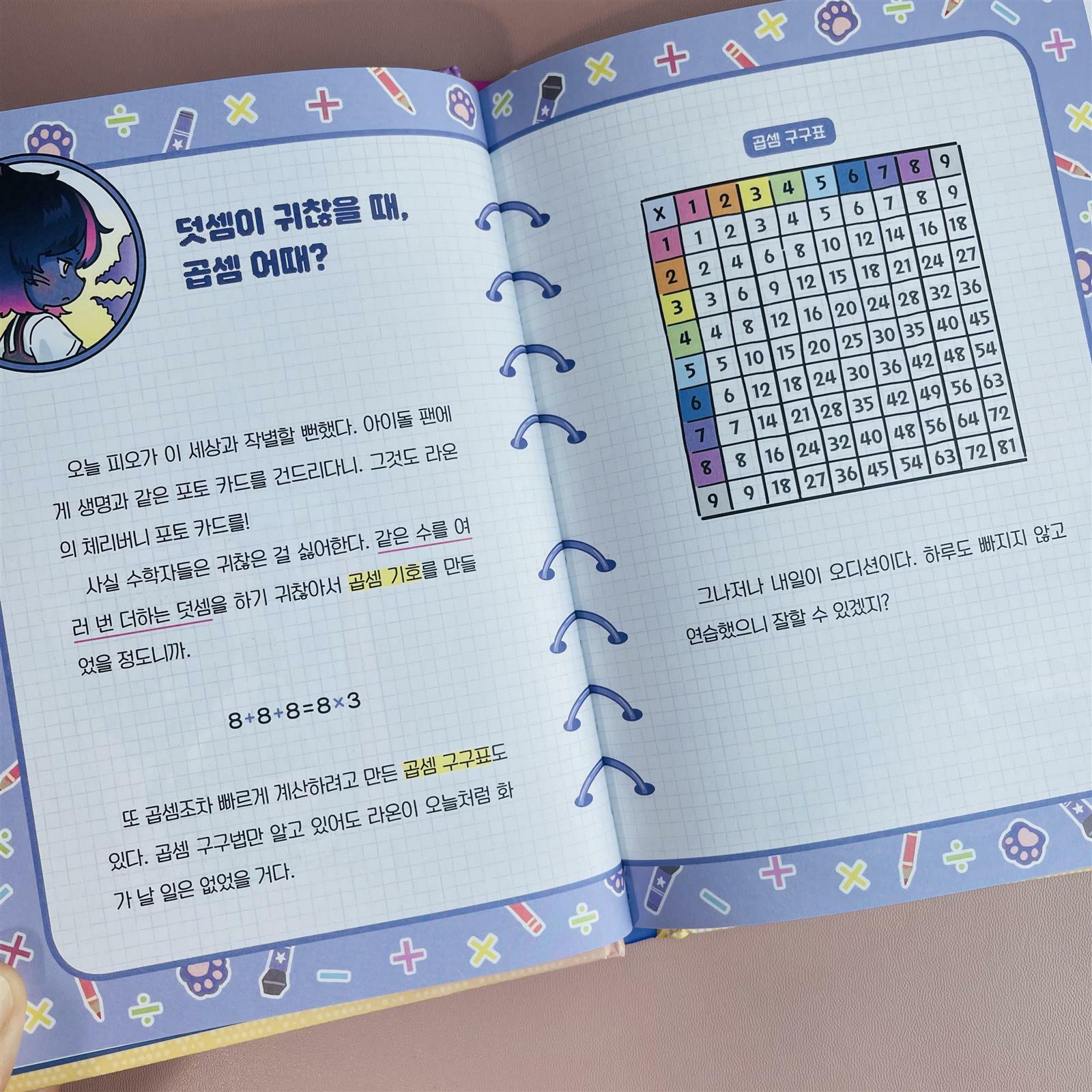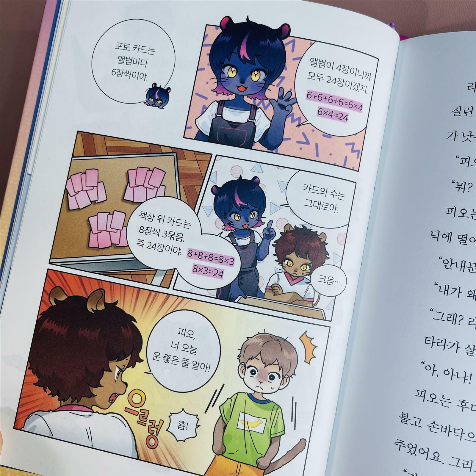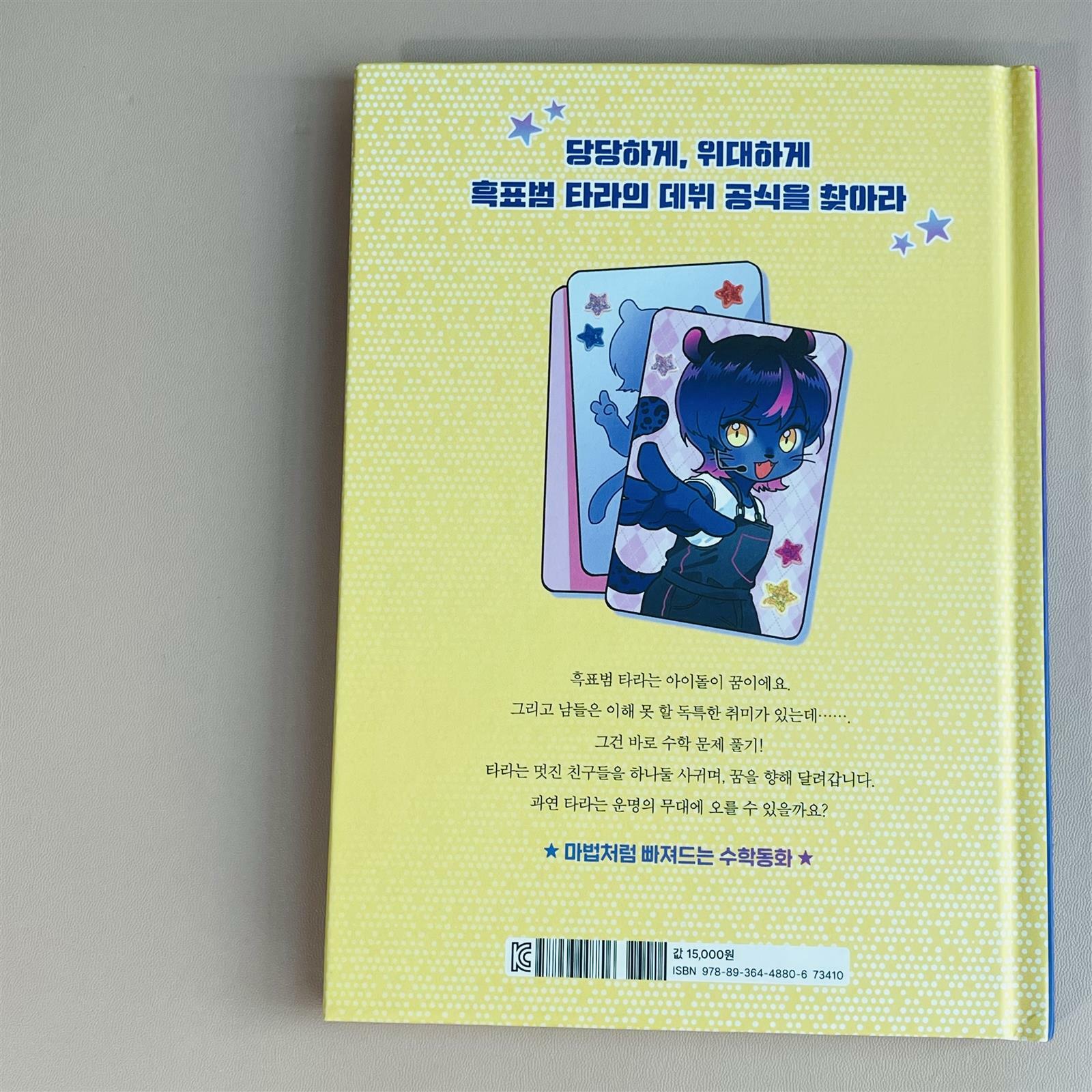 아이돌이 되고 싶은 취미가 수학인 흑표범 타라 . 친구들은 흑표범이 어떻게 아이돌이 될 수 있냐고 하지만 “자기 생각을 춤과 노래로 멋지게 표현하는 가수가 아이돌이야” (17p) “그리고 피오, 다른 동물을 깎아내린다고 네가 더 우월해지는 건 아냐.“ (18p) . 언제나 차분하고 당당한 타라의 모습은 우리 아이도 닯았으면 좋겠다~🥹 싶구요 :) . 중간중간 타라와 함께 하는 수학이 나오는데 알기 쉽게 구어체로 잘 이야기 해주어 요즘 한참 구구단 공부하는 아이한테 아주 타이밍 딱 맞춰 잘 제공된 책이 아니었나 싶다 . 너무 문고책도 아니면서 그렇다고 만화와 삽화의 비중이 많지 않고 적절한 공부하다가 머리 식힐겸 쓰윽 들이밀었다가 공부는 안하고 책 한권 다 읽게되는 그런 마성의 책 더이상의 긴 말이 필요한가 싶다. . 구구단에 지쳐있는 아이에게 구구단은 우리 실 생활에서 이렇게 편리하게 사용할 수 있음을 잘 설명해 주고 있어 다시 힘낼 수 있게 해주는 타라의 마법. . 이제막 구구단을 시작한 아이들에게 추천하는 책이며 구구단을 왜 해야하는지 이해가 안간다는 아이들에게도 추천하는 책이다. 꿈의 아이돌 타라 📚 많.관.부 :)