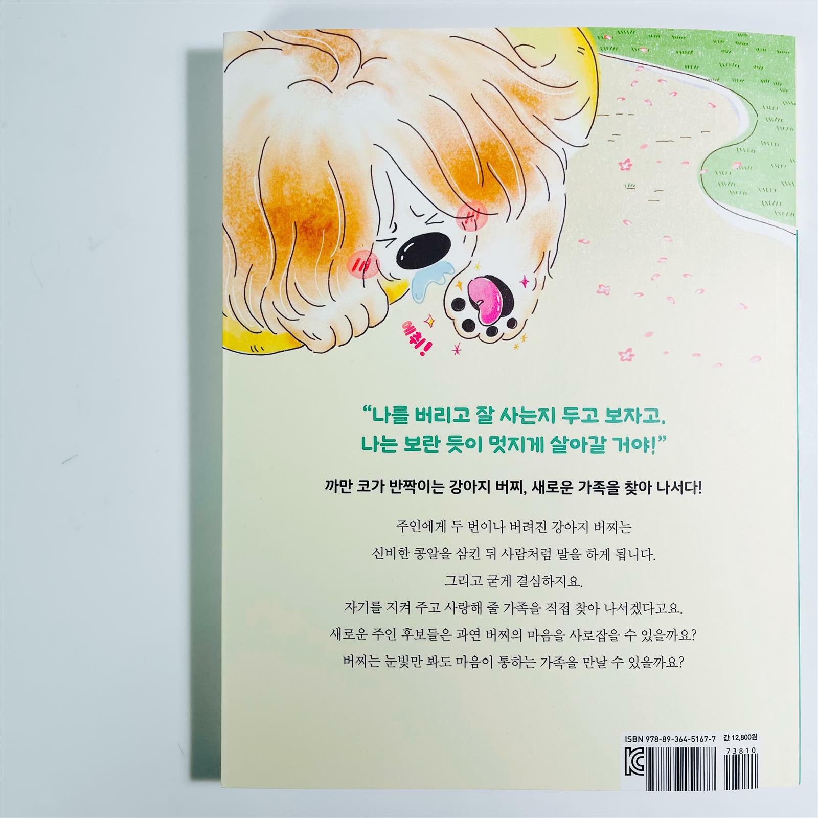 두 번의 입양 두 번의 버려짐 . 지금 두찌는 달콩공원 한가운데 있는 플라다너스 나무 아래에서 도대체 왜 자신이 버려져야만 했는지 억울해 하고 있습니다. . 그리고 다시 버려지지 않으려면 어떻게 해야만 하는 건지 생각합니다. 그리고 떠올립니다. . “말 !” 자신이 말을 할 수만 있다면 버린 주인에게 따져 물을 수있을 테니까요 하지만 강아지인 버찌가 말을 한다는건 절대 불가능 한 일 . 버찌는 마침 동그랗게 빛나는 보름달을 바라보며 소원이라도 빌어 봅니다. . . (13p) ‘달님, 보름달님! 저도 말을 하고 싶어요. 말을 할 수 있게 해 주세요. 제발요. 달님! 보름달님! 저는 더 이상 버려지고 싶지 않아요.’ . . 순간!! 코오옹~ 하는 소리와 함께 향긋한 벚꽃 향이나는 연분홍색 콩 한 알이 달빛에 비춰져 있었고 버찌는 그 콩을 삼켜 ... 아니 정확하게는 콩이 삼켜져 버려 갑자기 말을 할 수 있게 되었습니다. . . (42p) 말하는 강아지 나예요. 노래하는 강아지 버찌예요. 🎶 신기한 콩알을 먹었어요. 달님이 내게 주었지요. 🎵 멋진 주인을 찾아요. 버찌의 주인을 찾아요. 🎵🎶 . . 새로운 주인을 찾아가는 여정도 전 주인을 만나 듣게되는 아픔도 모두 담겨져 있지만 버찌는 씩씩하게 잘 이겨냅니다. . 그 과정에서 자신의 슬픔에서 빠르게 빠져나와 앞으로의 삶을 위해 개척해 나가는 모습 또한 멋져 보이기 까지 합니다. . . (60p) 누군가의 마음은 누군가의 것이지, 내 것은 아니잖아 . . 우리의 씩씩한 강아지 버찌 !! 귀엽고 사랑스럽기만한 버찌의 행복을 응원하며 초등 1, 2, 3학년을 위한 신나는 책읽기 67권 버찌의 선택 📚 많은 관심 바랍니다 :)