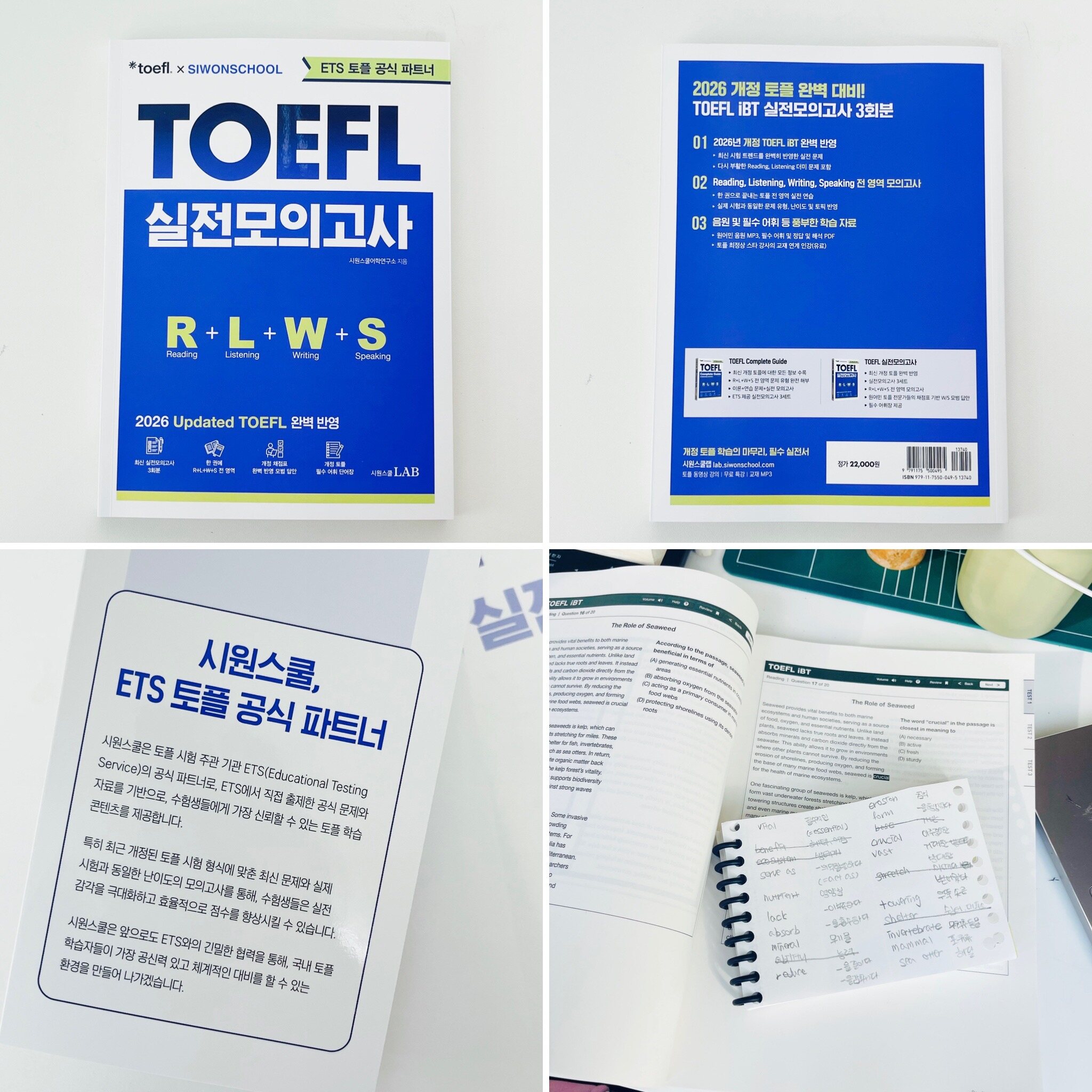 토플을 준비해야겠다고 처음 마음먹은 날. 설렘보다는 걱정이 먼저 앞섰어요. 토플시험이라는 단어가 괜히 크게 느껴졌거든요. 토플영어. 언젠가는 해야 할 것 같았지만 막상 시작하려니 어디서부터 손대야 할지 모르겠더라고요. 토플독학이 가능할까. 나 혼자서 해도 될까. 그 질문을 안고 검색창을 계속 들여다봤어요. 토플책추천. 토플교재. 토플공식문제집. 비슷한 말들이 반복되는데 정작 입문자에게 필요한 정보는 잘 보이지 않았어요. 그러다 눈에 들어온 책. 시원스쿨LAB에서 나온 ETS 토플 공식 파트너 TOEFL Complete Guide였어요. ‘ETS 토플 공식 파트너’라는 말이 괜히 더 믿음이 갔어요. 적어도 시험이랑 동떨어진 책은 아니겠구나 싶었거든요. 책을 펼쳤을 때 가장 먼저 느낀 건 압박감이 덜하다는 거였어요. 토플 처음 보는 사람 기준으로 차분하게 설명해줘요. 2026년 개정 토플이 어떻게 달라졌는지. 왜 예전 방식으로 공부하면 안 되는지. 입문자가 가장 헷갈릴 만한 부분부터 먼저 짚어줘서 마음이 조금 놓였어요. Reading. Listening. Writing. Speaking. 네 영역이 한 권에 들어 있어요. 그래서 더 어려울 줄 알았는데 생각보다 정리가 잘 되어 있어요. 문제를 던져놓고 알아서 풀라는 식이 아니라. 왜 이런 문제가 나오는지. 이 유형에서는 어디를 봐야 하는지. 토플문제풀이의 방향부터 알려줘요. 영어 실력이 완벽하지 않아도 순서만 알아도 덜 헤매게 되더라고요. 특히 토플독학을 한다면 이 차이가 꽤 크게 느껴질 것 같아요. 그리고 ETS토플 실전모의고사 3회분. 이 부분은 생각보다 체감이 컸어요. 토플모의고사를 미리 경험해보는 것만으로도 시험이 덜 낯설어져요. 실제 화면이랑 비슷해서 토플시험이 조금은 현실적으로 느껴졌어요. Writing이랑 Speaking도 막연하지 않게 도와줘요. 뭘 얼마나 써야 하는지. 어떤 구조로 말해야 하는지. 기준을 보여주니까 혼자 공부하면서도 방향을 잃지 않게 돼요. 토플영어를 준비하면서 가장 무서운 건 틀리는 게 아니라. 내가 제대로 가고 있는지 모르는 상태인 것 같아요. 이 책은 그 불안을 조금 덜어줘요. 정답을 다 알려주기보다는 길을 보여주는 느낌이에요. 토플을 처음 시작하는 사람에게. 막막함부터 느끼는 사람에게. 천천히 출발선에 설 수 있게 도와주는 책이라는 생각이 들었어요. 토플시험이 아직 멀게 느껴진다면. 토플영어가 낯설게 느껴진다면. 최신 기준으로 정리된 토플교재 한 권부터 차분히 시작해봐도 괜찮겠죠. 처음이라서 더 조심스러운 지금. 그래서 더 제대로 시작하고 싶다면. 이 책이 첫 방향을 잡는 데는 도움이 되어줄 것 같아요. TOEFL Complete Guide 📚 많.관.부 :)