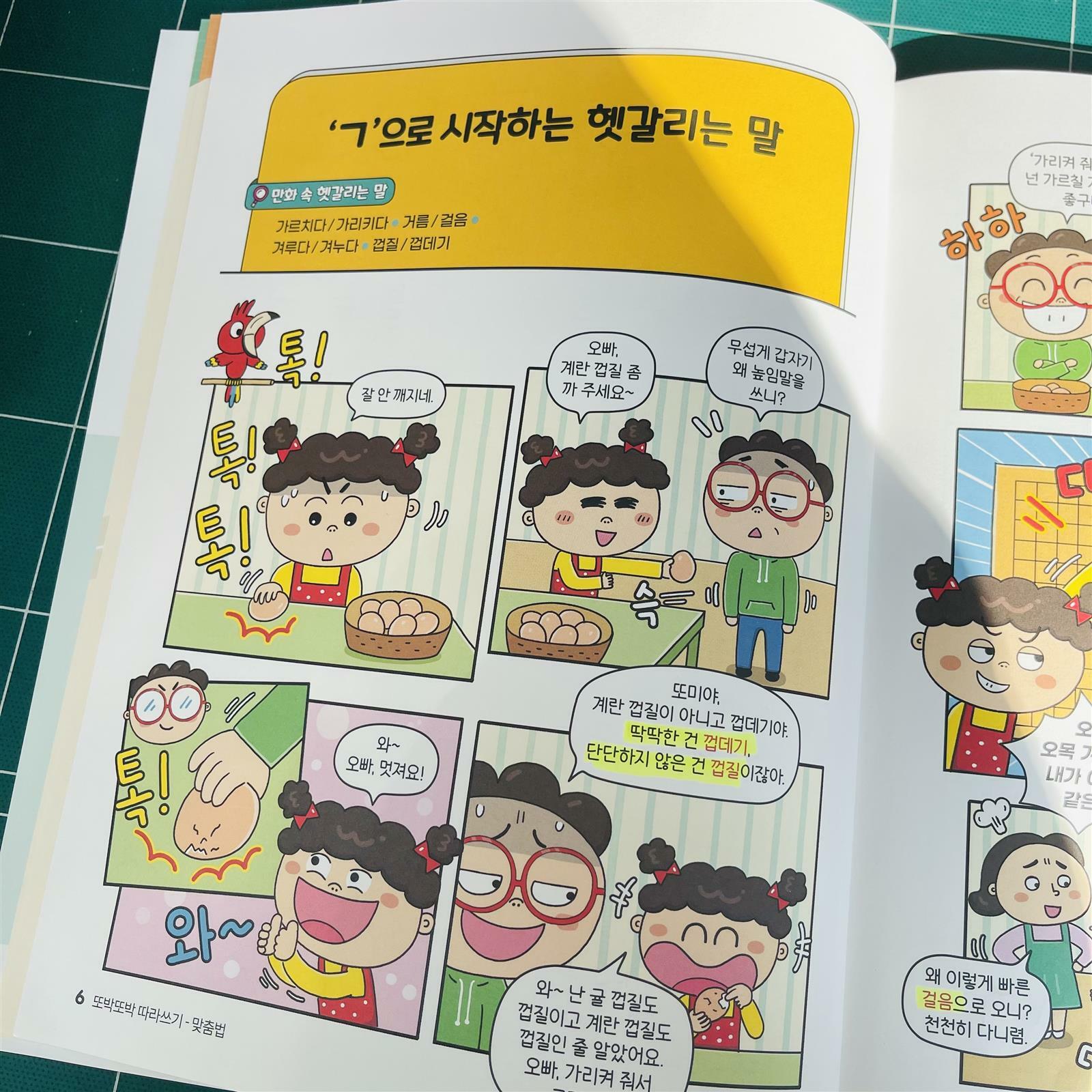 << 맞춤법과 받아쓰기 실력 향상을 위한 교재 >> 저희 아이는 어릴 때부터 유난히 책 읽는 걸 좋아했어요 그러다 보니 자연스럽게 한글 공부도 빨리 떼게 되었는데요 학교 입학하고나서 보니 맞춤법과 띄어쓰기 실수를 반복적으로 하기에 본격적으로 연습을 시켜야 겠다 싶어 선택하게 되었습니다 :) << 귀여운 그림이 삽입되어 있어 지루하지 않게 공부할 수 있는 초등학교 1학년용 학습만화 >> 학습만화 중간중간 보면 귀엽고 아기자기한 그림체가 마음에 들었어요 그래서 전혀 지루하지 않고 오히려 더 재밌어 하는거 같더라구요 비슷한 용어 뜻풀이까지 정확하게 되어 있으니 아이가 한번 배운건 정확하게 인지하고 넘어가더라구요 아직 한글 떼기가 덜 된 미취학 아동이라면 부모님이 같이 해주시면 좋겠죠~? << 아이의 바른 글씨체 형성 및 집중력 향상 효과 기대 >> 이제 초등 저학년이라 지금 한창 손글씨 연습 많이 해야될 시기 잖아요? 손글씨 바르게 쓰는 습관 들여놔야 나중에 중학교 고등학교 올라가서도 악필 되지 않거든요 글씨 쓸수 있는 칸이 큼직큼직해서 눈에 쏙쏙 들어와 또박또박 예쁘게 적다보면 자연스럽게 집중력도 높아지니 여러모로 이득이 아닐 수 없겠네요 ^^ 초등학교 입학 전에 미리미리 연습해두어도 좋고 입학하고 나서도 저학년 맞춤법익히기 너무 좋은 한글쓰기 워크북이랍니다 ^^