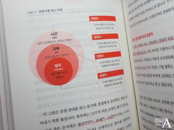 저자는 독자들이 이 책을 읽고 실제 비즈니스에 적용하고 실천할 수 있도록 용이한 '틀'을 제시하기도 하는데, 그 덕분에 맨땅에 헤딩하지 않고 보다 쉽게 접근이 가능했다.