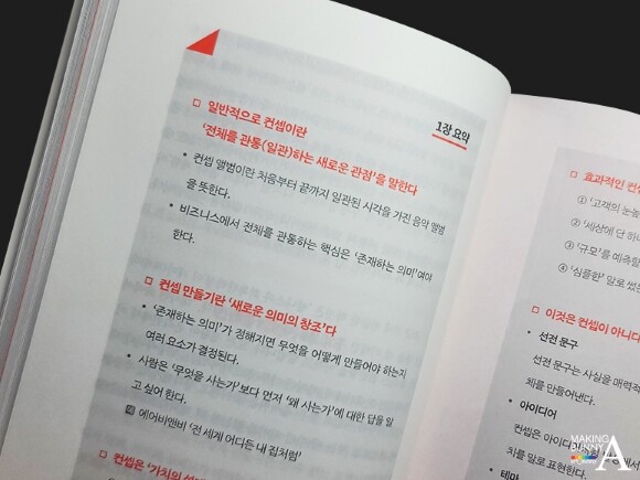특히 독자가 맨땅에 헤딩하지 않도록 컨셉을 만드는 데 용이한 '틀'을 비롯해 각 장마다 배치된 <실전편>을 배치함으로써 각 장을 제대로 이해하고 소화할 수 있도록 돕는다.
